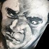 Lon: On my left arm I put a dead skull with bat wings embedded in a rosary with the banner “Believe in Love Life & Death”. That's what I believe in. On my right arm are all the horror icons with which I grew up and which have influenced my understanding of art. Bela Lugosi's Dracula, Boris Karloff's Frankenstein, Michael Myers, Pinhead, Leatherface, Freddy Krüger, the little girl from ‘Night of the Living Dead’, the Evil Dead Basement Zombie and The Crow (ok it’s not really Horror). The whole is “crowned” by the demon which we are using as a logo for THE FRIGHT. In addition salt, pepper and onions... perfect!