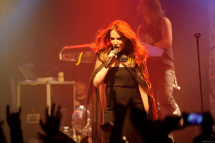 I did not dig EPICA all along, witnessing some of past shows on two TUSKA festivals in Helsinki. These festivals are large outdoor events, that are cool for attending one type of shows and make others look somewhat bleached. Back then, I did not really go impressed by anything but Simone's beautiful appearance. This gig was a totally different experience. Nosturi is semi-large venue and by far has a best light in the town that is placed carefully and professionally. Even with in-house light technician it is usually good. EPICA seem to bring their own light technician who made the show really shine on the theatrical level, making by far the most sophisticated light I have seen here to date. The show itself was also built solidly, and kept people warmed up through the entire gig.