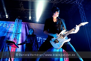 Before MÄRZFELD began their show with a nine-songs lasting set with ‘Vaterland’, EISBRECHER front man Wesselsky and guitarist Jürgen Plangger entered the stage to entertain the quite filled venue with a short and apparently not very well-trained play improvisation from Gotthold Ephraim Lessing's ‘Nathan the Wise’. Of course they gave some “wise” and social-critical thoughts along the way to their fans, as usual. Afterwards, MÄRZFELD rocked their discography for almost 40 minutes without presenting any RAMMSTEIN covers. They ended their set with ‘Stalingrad’, another song from the ‘Nackt’ record which will be released sometime during this year. Unsurprisingly, the band and their catchy songs were granted more than the usual polite applause by the many German Rock/ NDH lovers.