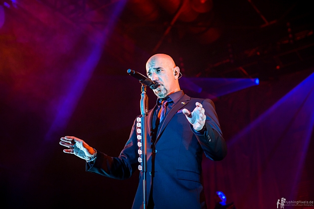 My next highlight were ONE I CINEMA. The opener reminded me of the “queen of the damned“ soundtrack, right from the first notes of their intro (Check out https://youtu.be/y-GUTVnxK1c and https://youtu.be/VupY3frRZfE). Like most openers, ONE I CINEMA did not interact much with the audience but focused on the music and tried to play as many songs as possible. I was surprised that their cd was not available at the merch stand. The dark atmosphere of their new metal thunder split the audience in half. A lot liked Marco´s fantastic voice and the extraordinary sound of ONE I CINEMA, others found it too complicated, not accessible enough. Good craftsmanship, well-structured songs, great voice and sound... not everyone’s taste, but mine.