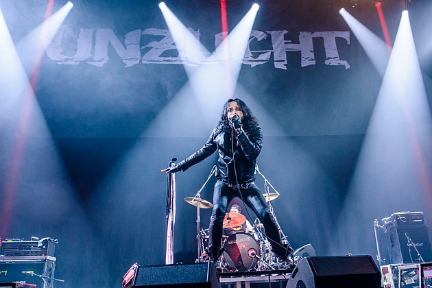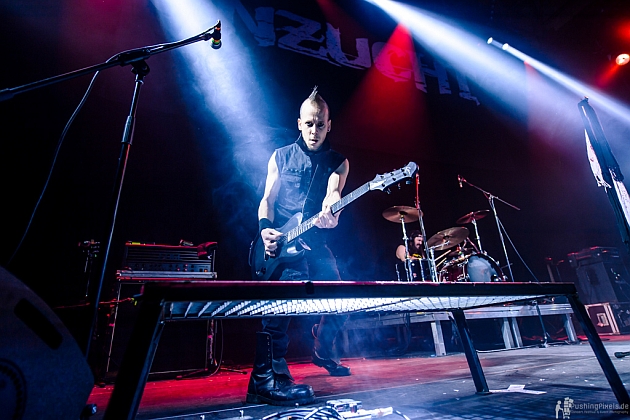 UNZUCHT, the second supporting act (co-headliner to others), also pleased the other half of the audience, making music from the same genre like EISBRECHER: Neue deutsche Härte. New hard music from Germany. Their rock show featured, among others, songs from their first EPs ‘Engel der Vernichtung’(self-release) and ‘Deine Zeit läuft ab’. The short technical difficulties (the wireless guitar transmitter didn´t work) were papered over with a little help from the audience. The crowd was on fire when UNZUCHT played their hit ‘Deine Zeit läuft ab’.