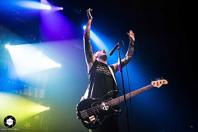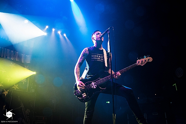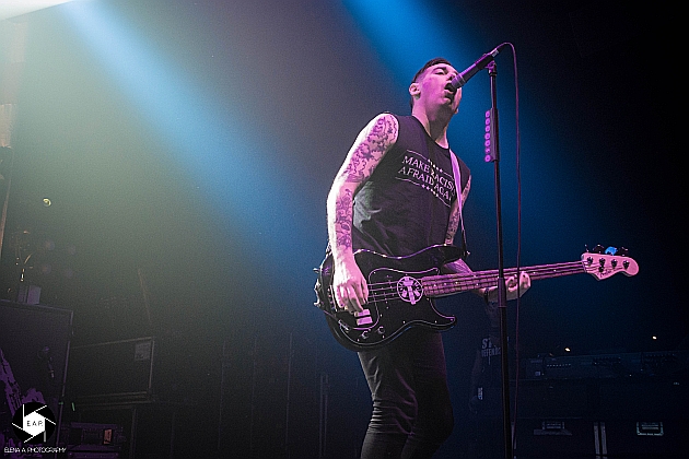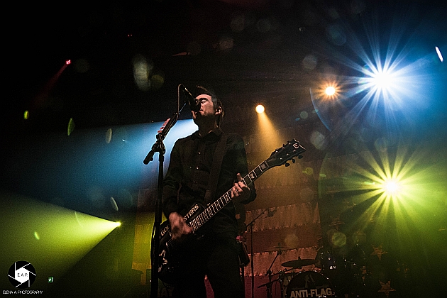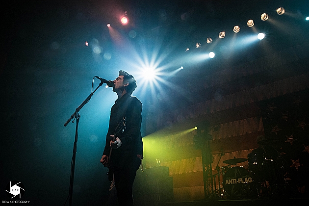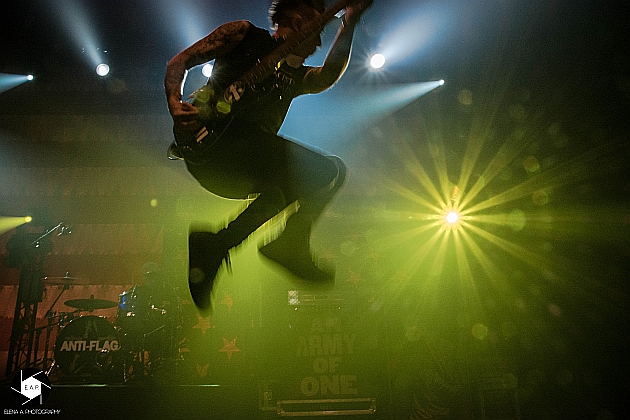 After a short set change, ANTI-FLAG came on stage with a well-planned performance. These were also full of energy, even though they had already given a concert in Cologne on the same day. The stage presence was great and the energy of the four-headed band immediately passed to the crowd. These sang every single song and had a lot of fun. The atmosphere was great and the band enjoyed the cheers of the people. The focus of the playlist were the albums ‘For Blood and Empire’ and ‘American Spring’. But also older songs like ‘Die for the Government’ were well-known by the fans. It was noticeable that the band had many years of stage experience. Justin Sane, for example, often jumped in front of the photographers and showed off. Chris # 2 also jumped back and forth and presented the photographers and, of course, the audience the finest jumps. Overall it was a successful evening. The first group warmed the crowd up for ANTI-FLAG and these delivered a generally good show. http://www.americanspring.net / https://www.facebook.com/anti.flag.official