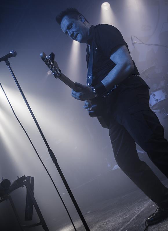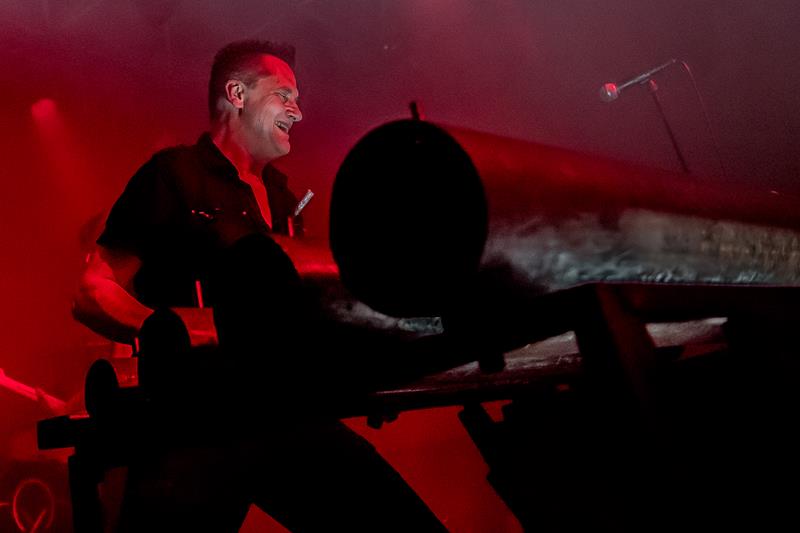 Shortly before 10 pm, the lights went out, and the band entered the stage. Jürgen Engler - seemingly rejuvenated - was the last to join the stage and the band opened the set with ‘Kaltes Herz’ from the 2015 album ‘V - Metal Machine Music’. Accompanied by the frenetic cheering of the fans, DIE KRUPPS played classics from 10 different albums of their extensive band catalogue. Songs from DIE KRUPPS’s EBM era, such as ‘Der Amboss’, were brought to life with the help of the so-called Stahlophon (“a cross between a xylophone and a railroad track”), which Jürgen hit with seemingly endless energy. But also the guitar-heavy riffs of songs like ‘Crossfire’, ‘To the Hilt’, and - last song before the encore - ‘Fatherland’ catapulted the decade-old tracks into the here and now, and the audience embraced them with open arms.