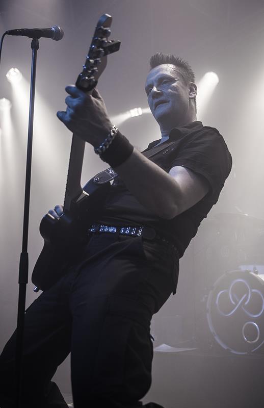 After an incredibly short stage break of 8 minutes, the four band members with the characteristic skull make-up entered the stage. From the beginning it became clear that this would be a totally different show, as the opener featured Gothic Metal riffing at its finest, which was complemented by electronic synth sounds, which gave their music a certain industrial feel.