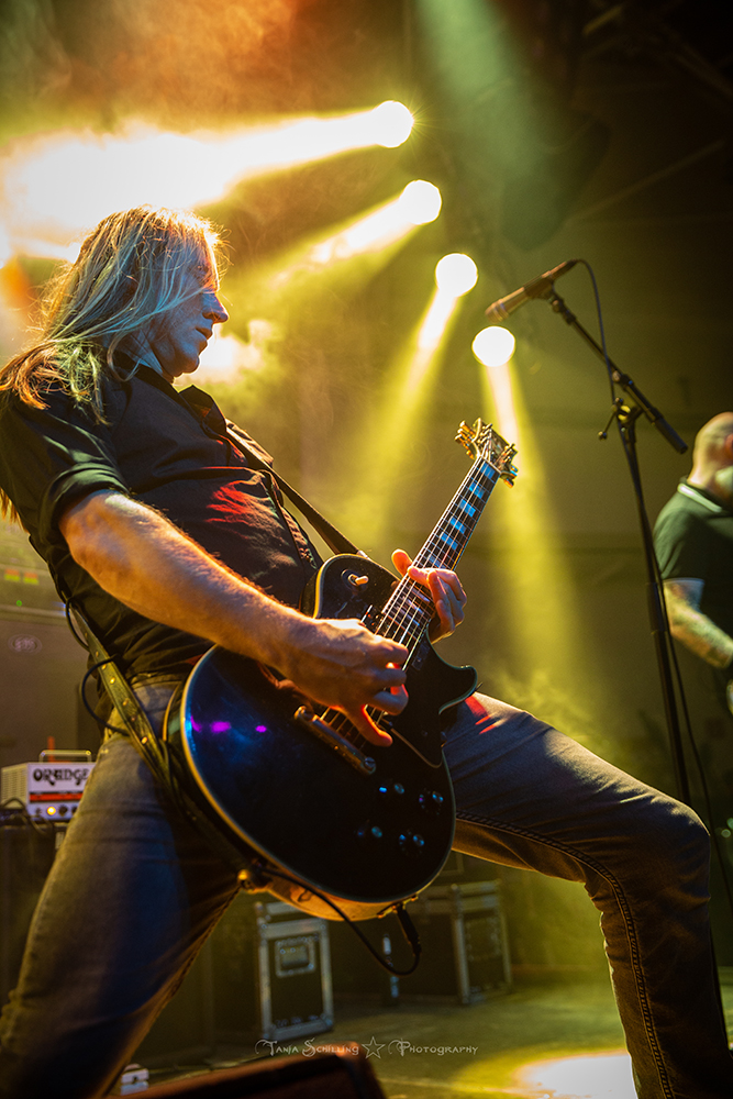Shortly before 7pm, the lights were dimmed, and the introductory music of the Muppet show played over the PA. Singer Toschie literally jumped onto the stage and the band kicked off their set with ‘This is War’ from their newest album, ‘Blackout’. AUDREY HORNE, who derive their band name from the series Twin Peaks, were fun to look at from the start. During their 40-minute set, all five band members exhibited a great degree of enthusiasm and technical versatility. Singer Toschie went off stage into the crowd to perform ‘Waiting for the Night’, taking pictures with the fans. And for the final song, ‘Straight into the Grave’, the two guitarists Arve Isdal and Thomas Tofthagen also climbed over the barrier and performed the song back to back in the middle of the excited crowd. It all ended in a giant feedback orgy, and one of the guitarists hung his guitar around an unsuspecting fan’s neck and continued to play it. All in all, AUDREY HONRE ticked all the boxes of a solid warm-up show.