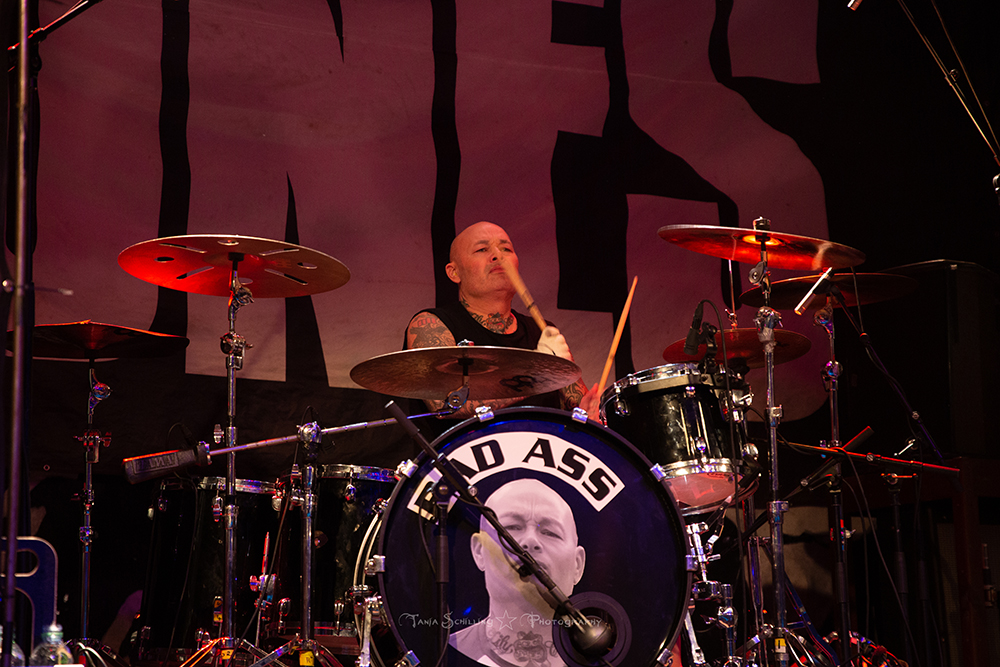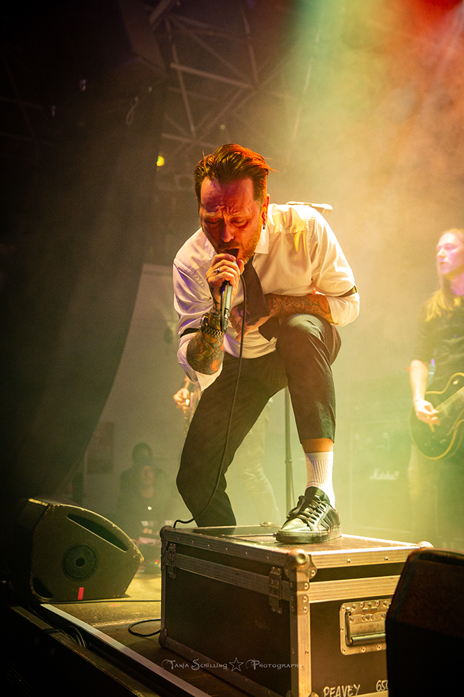 Shortly before 8pm, a cheesy, Mexican-sounding intro emanated from the speakers. Then a very British sounding voice over the PA commanded the audience to put on their “dancing trousers”. The four members of THE BONES entered the stage and opened their set with ‘The Chevy Devils’. The simple Punk Rock coupled with the sing-along melodies very quickly unleashed a strong reaction from the crowd in the form of flying beer cups and wild pogo dances in front of the stage. THE BONES did not waste any time and kept pumping out song after song, and the audience loved what they did, as the pogo dancing showed no sign a wearing down over their playtime of 60 minutes. Based on their appearance, a sizeable portion of the audience were there at the concert because of THE BONES, as they were wearing the band’s merchandise. So Beef, Spooky, Andi, and Boner (as the band members call themselves) had no problem turning their set into an hour-long Punk party.