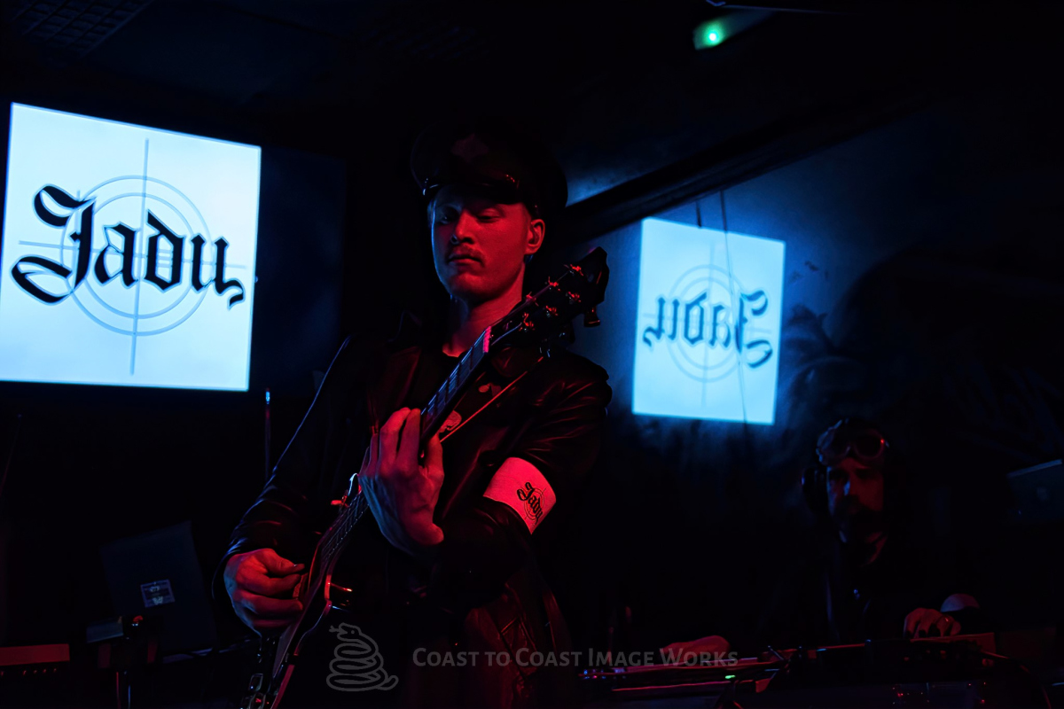 I have to start by saying I had not listened to JADU before this gig (“bad reviewer”) but I am starting to believe at times this is a healthy approach to seeing unknown live bands. I have lately been so caught out, so surprised by not preparing, by not listening beforehand, and JADU provided this surprise and so much more. I was genuinely blown away by this gig. The band assembled in stage, it is not the first band I have seen in military themed uniform on stage, but the guys pulled it off well. With various props scattered around the stage, all having some kind of military theme (drums, mannequins dressed in uniform and rifles strapped to mic stands) matched to the intro music of WW2 style and feel, my senses were awakened. When the rather delightful Jadu Laciny arrives on stage, in a full leather boiler suit, the crowd were obviously feeling the same as me - a face full of wow!