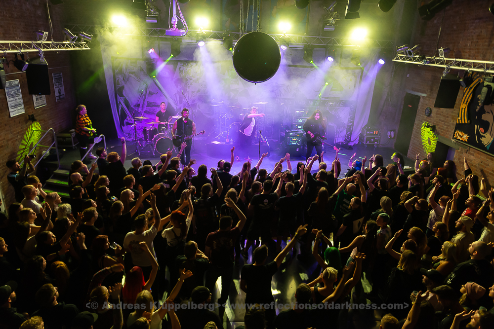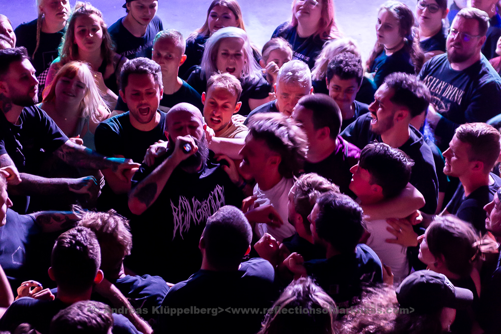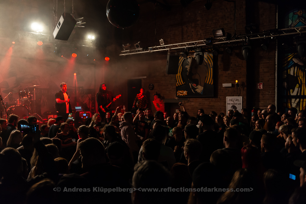 Tour guitarist David Baqi also delivered a quite memorable performance, holding his guitar while playing in artistic ways - and during ‘Thorns’ - taking a tour of the room himself, playing on the bar table in the back of the hall, and - for ‘The Hardest Part Is Forgetting Those You Swore You Would Never Forget’ - doing a little crowd-surf himself. The audience was definitely here for that kind of action, and they were joined by the band members of the two opening acts, who also decided to join in on the fun. Things came to an announced end rather soon as Joel announced the song ‘Dissolve’ after a mere 65 minutes of playing time. The audience - through frantic screaming and clapping - managed to extract one more song from the band - the memorable ‘This Loneliness Won't Be the Death of Me’ - as an encore, but after that it was all over, and the audience was sent off into the night.