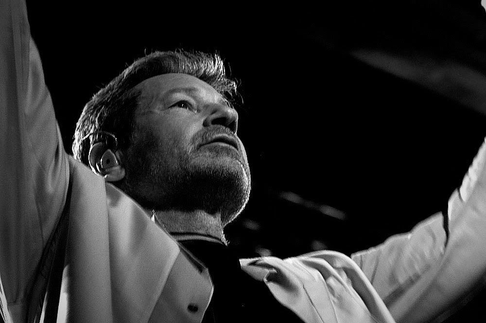 Could I have ever imagined that I would photograph the singing “Agent Mulder”? This would have been fantastic in my childhood. But now this is reality, and I am infinitely glad that I was able to see one of my childhood idols from the other side, from the side of music, which for me is also the air. After a brief technical pause, David appeared on stage. He calmly walked out and waved to the crowd with a big smile on his face. My thoughts that most people came to see David solely because of his big name were quickly dispelled. I was pleasantly surprised that the audience knew almost all of his songs by heart. He seemed to be a little surprised himself from the stage when he remarked that “you have prepared well for our meeting”. David has repeatedly said in interviews that it is very important for him that people who come to his concerts are interested in him not only as an actor, but that they are interested in his music, that people like the music and the atmosphere.