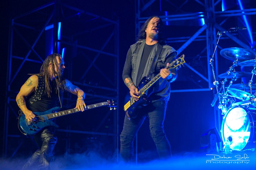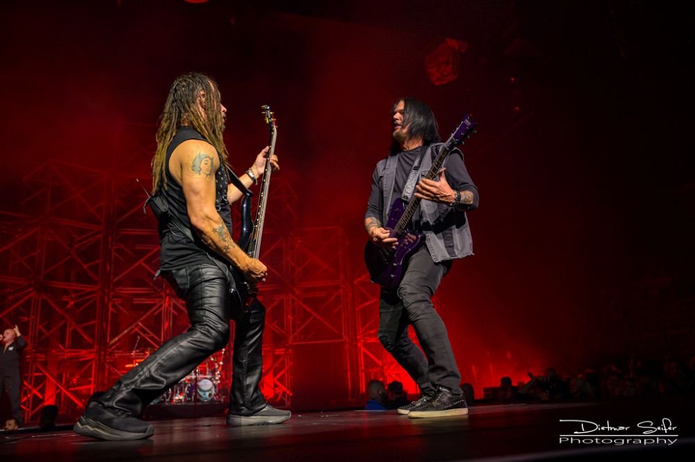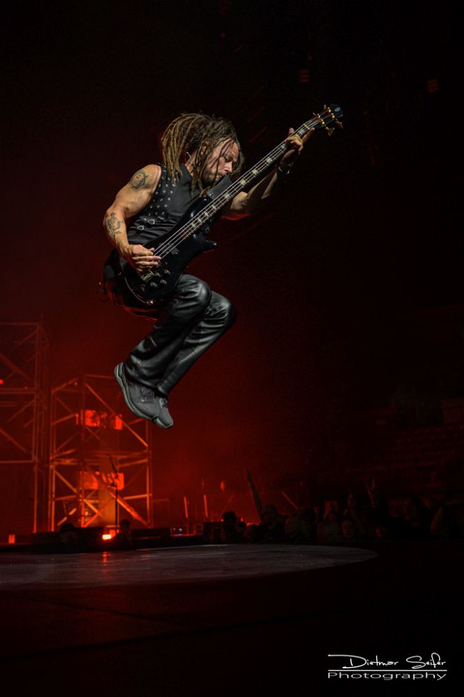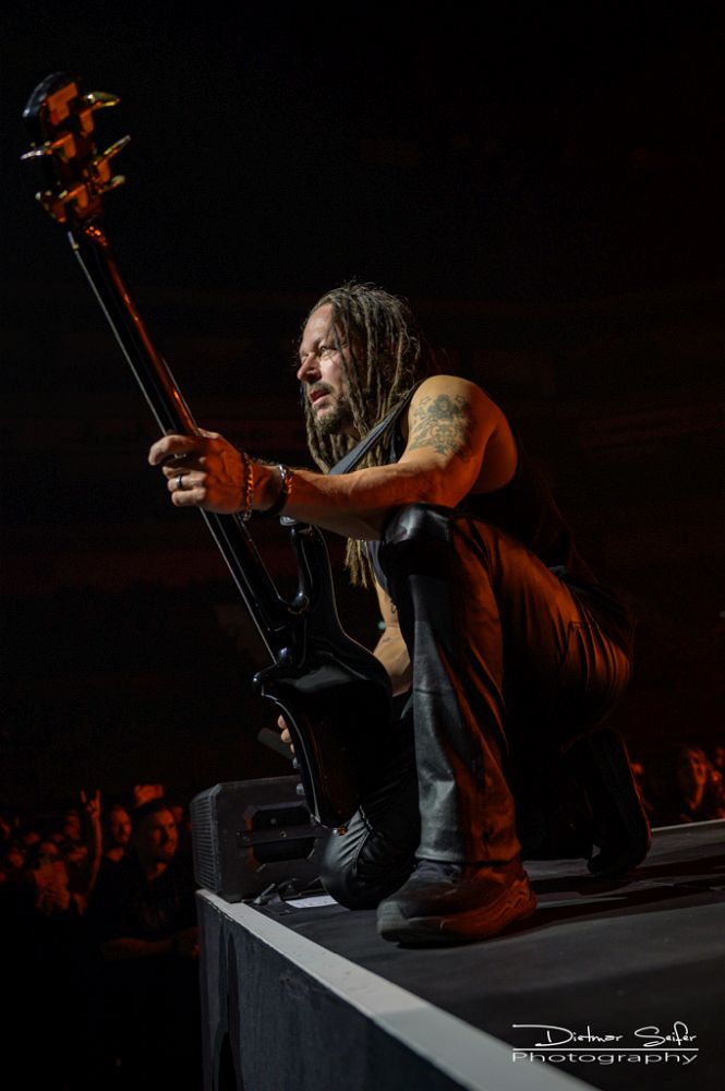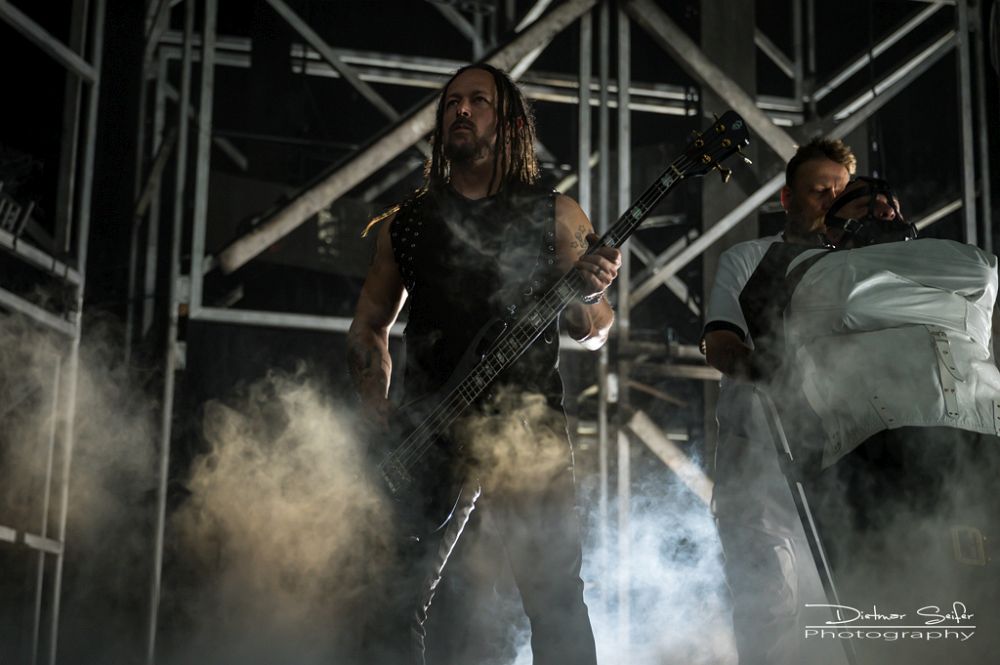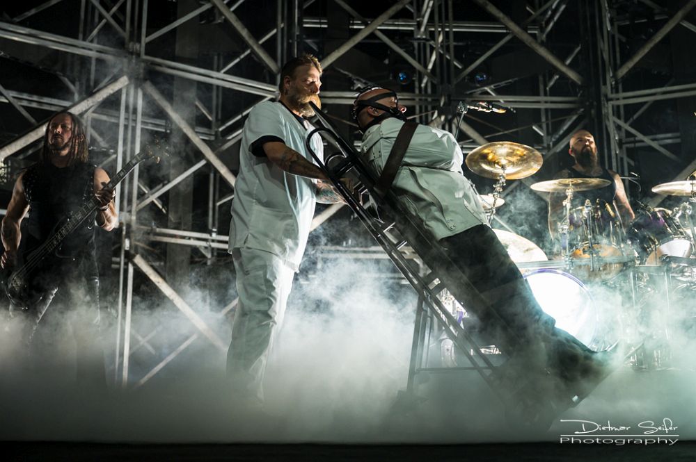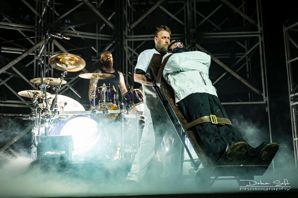 The TEARS FOR FEARS song ‘Shout’ was a nice break from the mayhem and showed DISTURBED’s prowess apart from shredding. The first part of the gig came to an end after 60 minutes with a mock execution of David Drainer via electric chair for the song ‘Meaning of Life’. This was followed by - what normally occurs during classical music concerts - a twenty-minute break, which a big chunk of the audience used to reload at the beer bars.