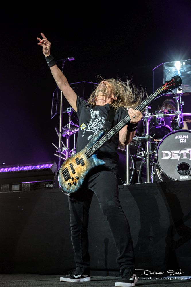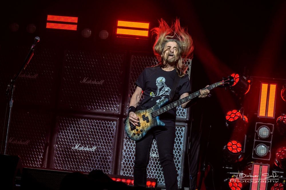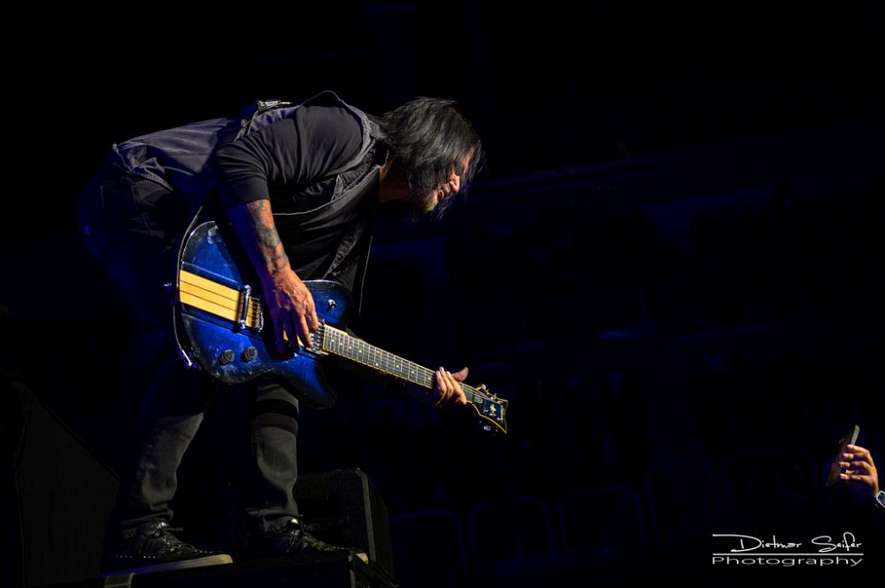 The setlist featured a good sample of the band’s discography over the decades, with their uber hit ‘Symphony of Destruction’ being played towards the end. Initially, the sound-mix suppressed Dave’s trademark singing voice, so it was almost eclipsed by the almighty drum set operated by Dirk Verbeuren, but the technicians figured this out.