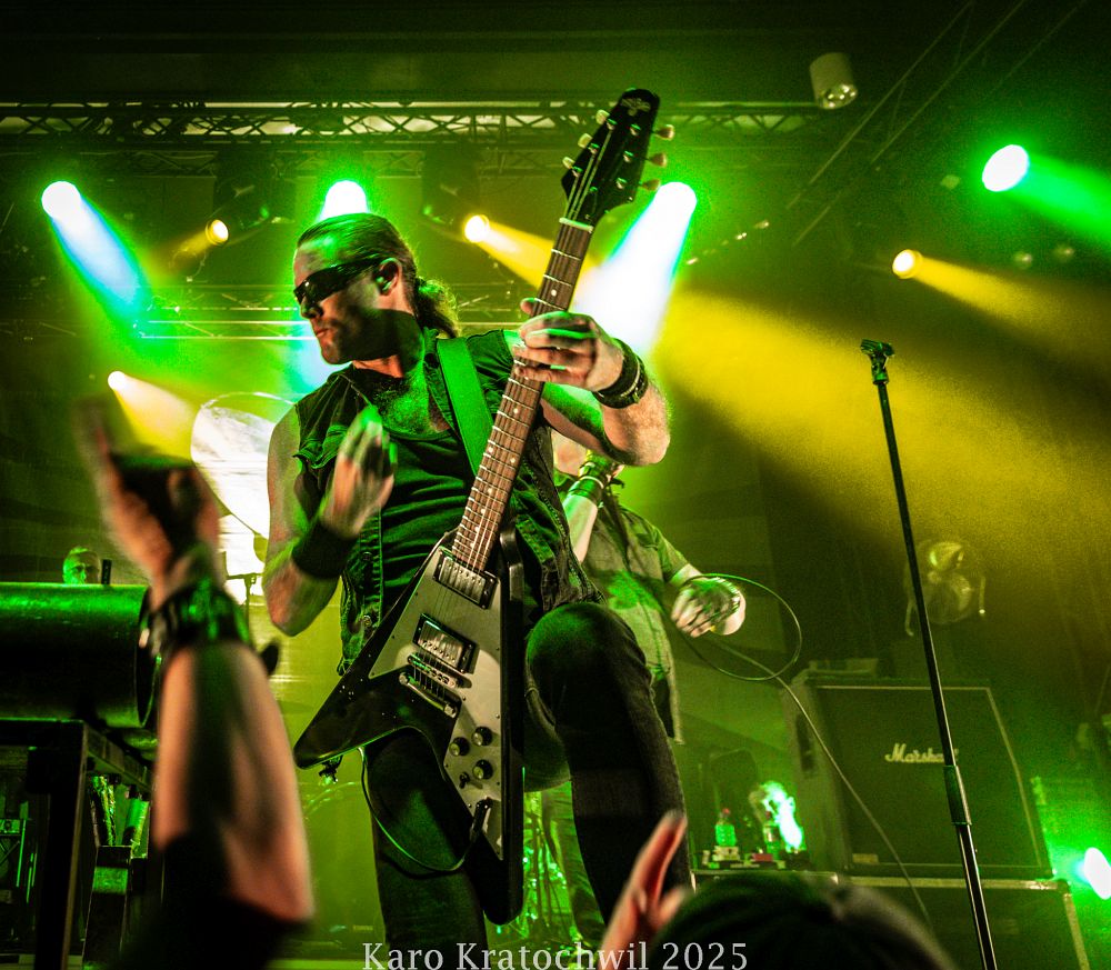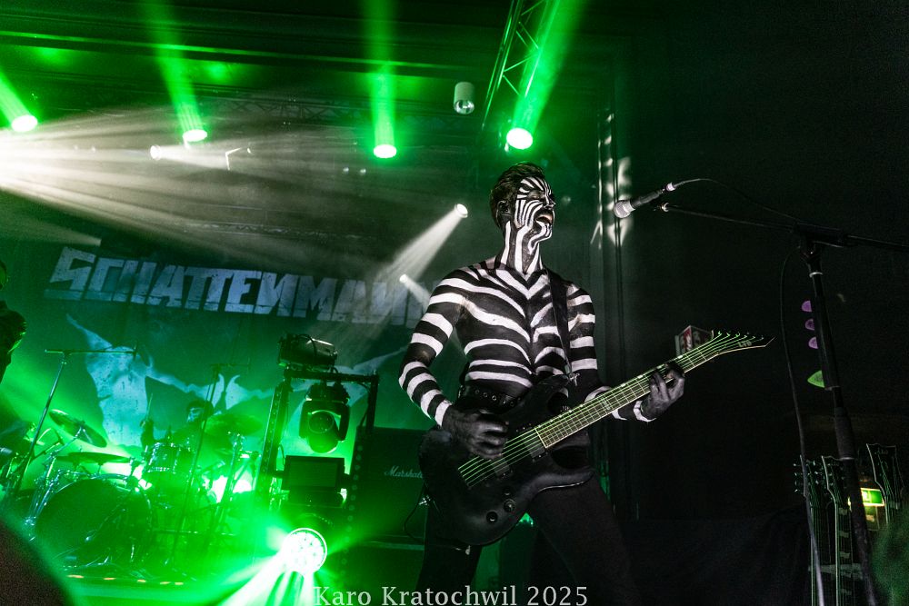 Then came SCHATTENMANN, shifting the energy into wild, unrestrained territory. From the moment they stormed the stage, their performance was a riot of power, theatre, and raw impact. Lavish costumes, dramatic staging, and sonic artillery created a world of their own - equal parts spectacle and assault. Their sound was sharp, modern, and ferocious, each riff and beat delivered with precision, but infused with a wild energy that kept the crowd locked in.