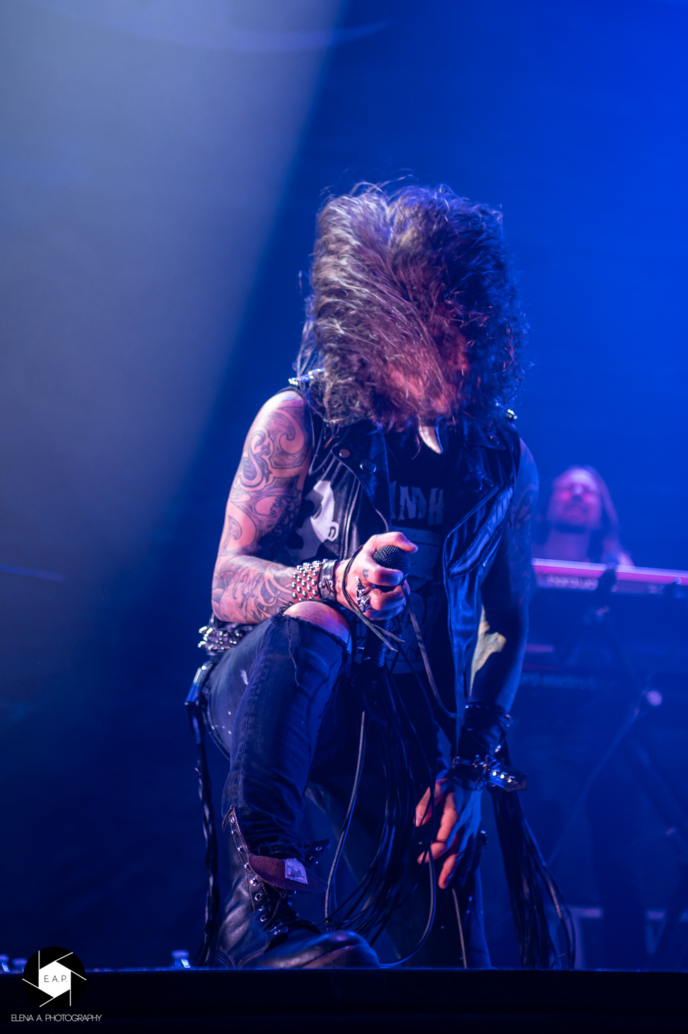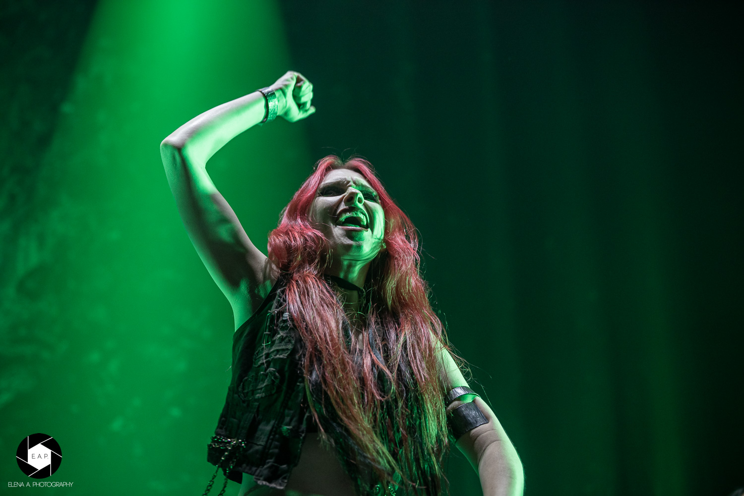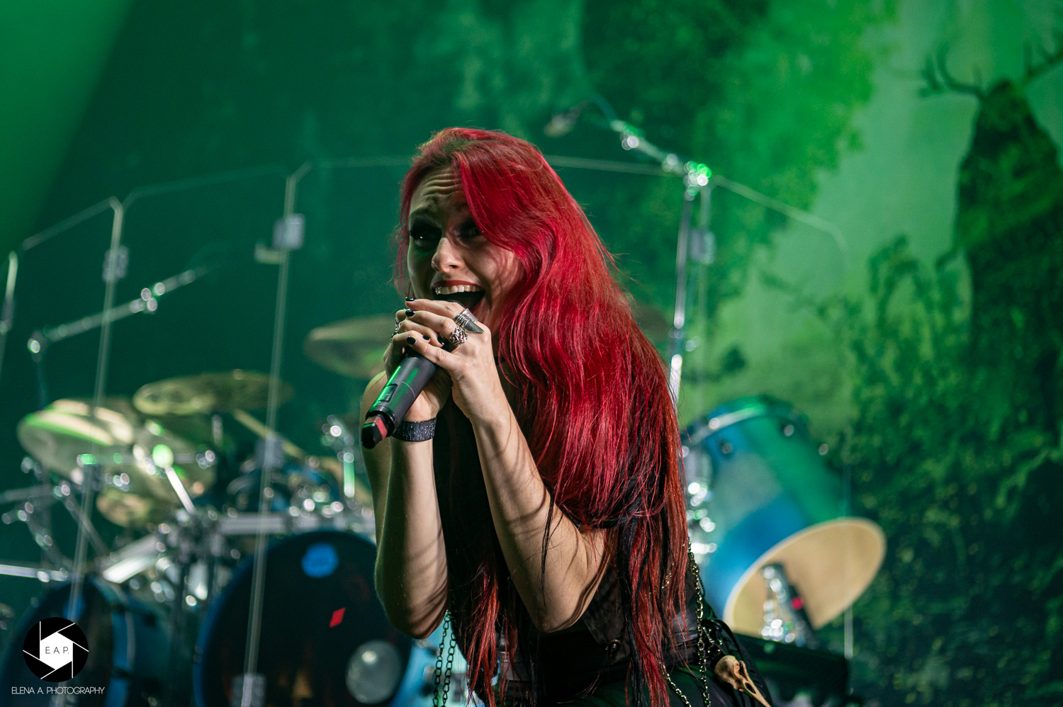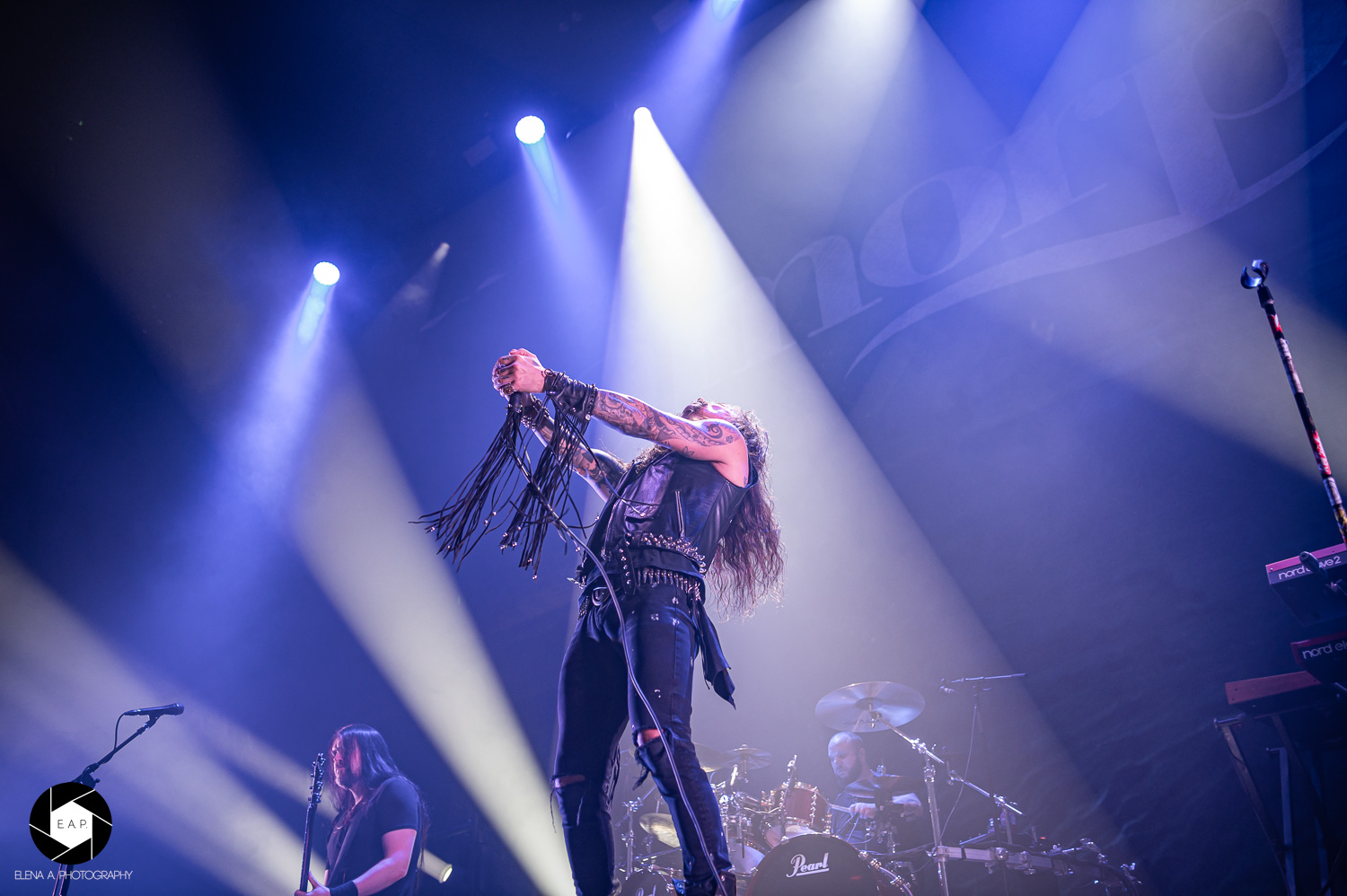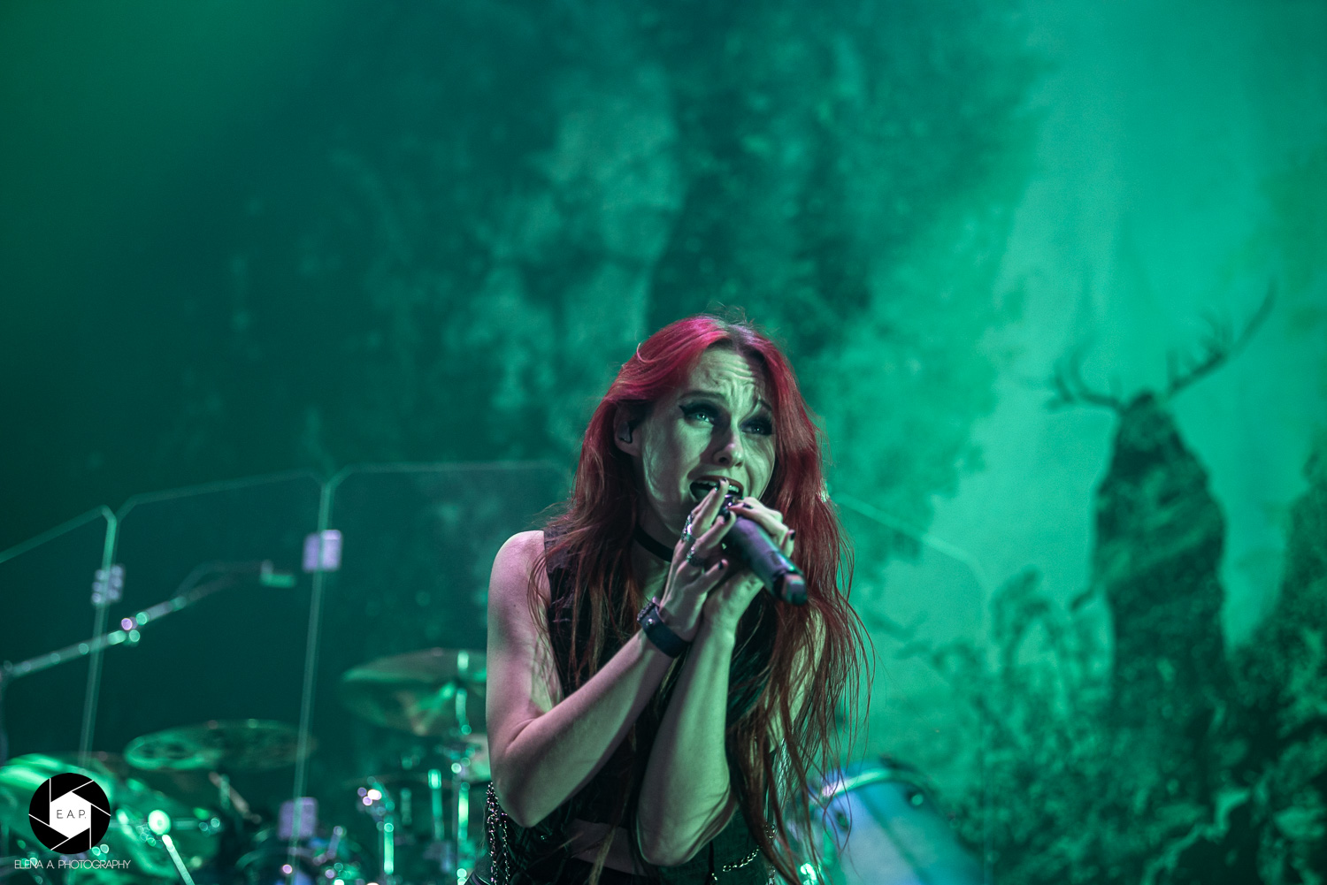 The interplay between Christian Glanzmann’s raw growls and Fabienne Erni’s clear vocals worked perfectly. Particularly impressive was ‘A Rose for Epona’, in which Fabienne dominated the stage and put the increasingly crowded hall into a reverent state. ‘The Call of the Mountains’ was surprisingly performed in French, which caused additional enthusiasm among the local audience.