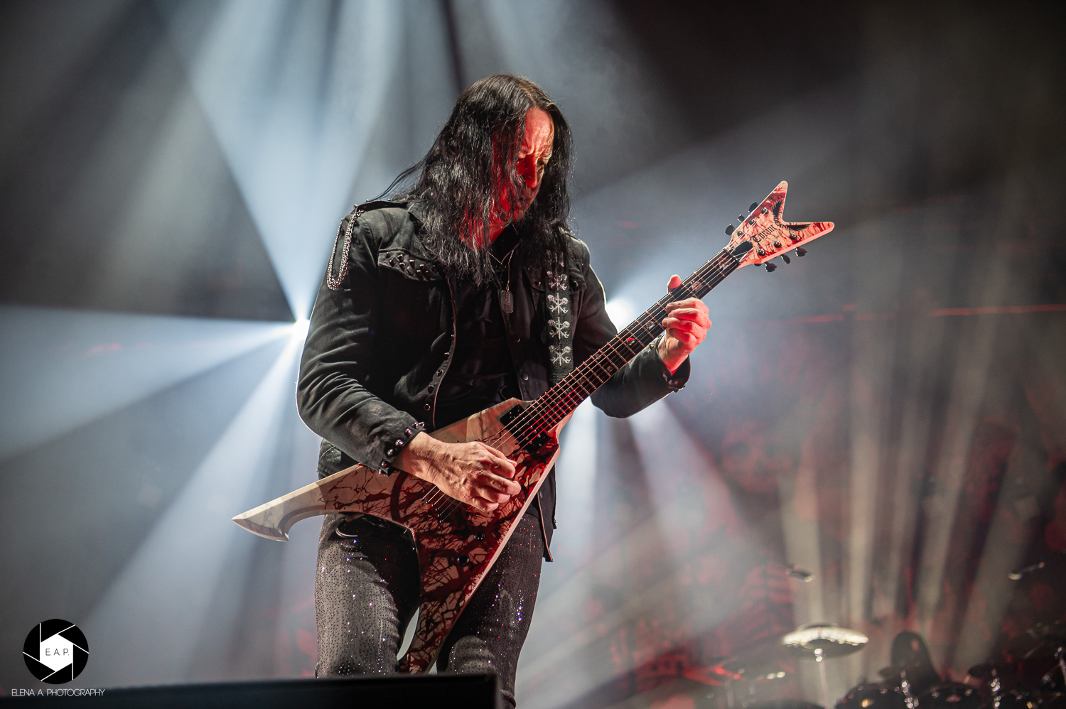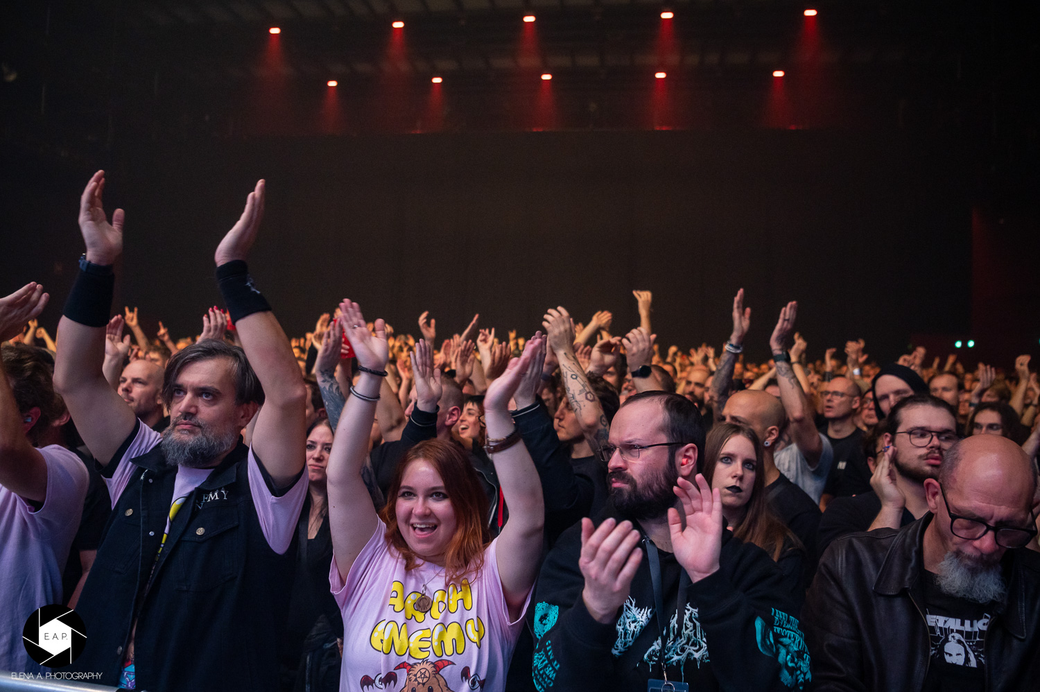 ‘Blood Dynasty’, ‘War Eternal’ and ‘My Apocalypse’ continued this intensity and showed the band in their element: uncompromising, precise, devastating. Then, however, the set noticeably flattened out. The middle phase, with ‘Illuminate the Path’, ‘Liars & Thieves’ and the somewhat tamer arrangements of songs like ‘Saturnine’, seemed like a concession to the various fan groups. While this was understandable to appeal to a broad audience, it cost the performance its drive. The set followed a calculated pattern and interaction with the audience was limited to the usual calls to sing along and raise their fists.