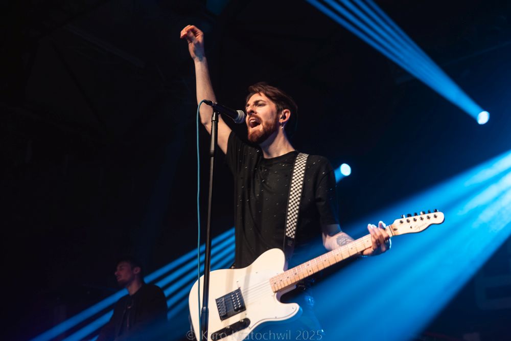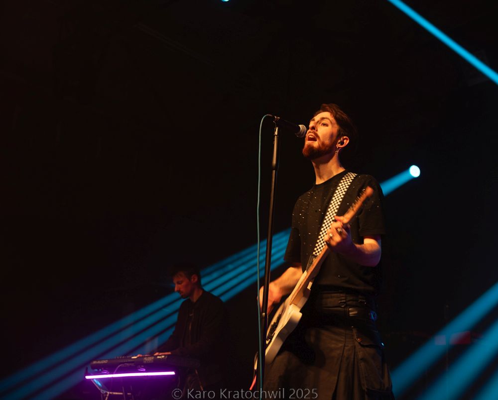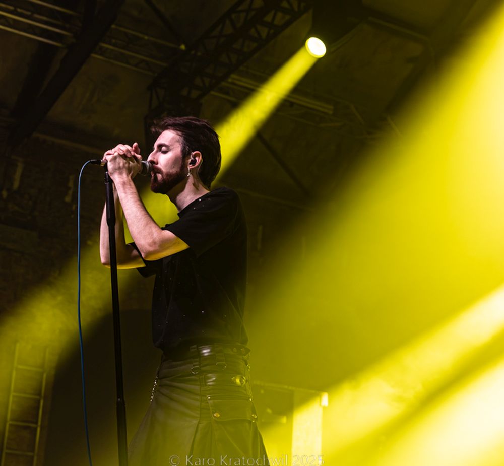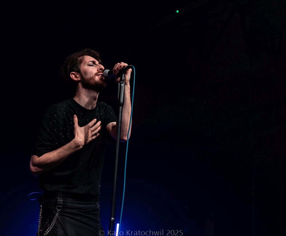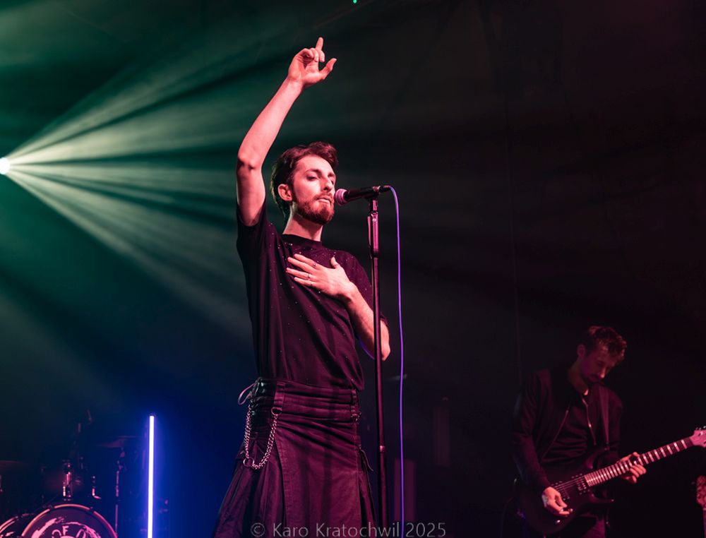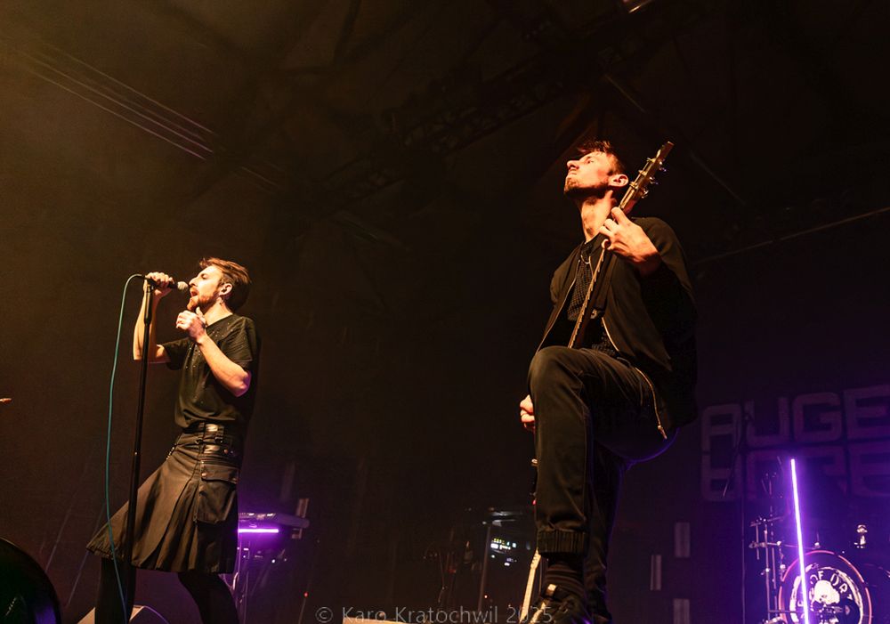 AUGER are a UK-born, Germany-based Darkwave / Dark Rock duo formed by Kyle J. Wilson (vocals, keyboards, programming) and Kieran Thornton (guitar). Since forming in 2017, they’ve built a distinctive, narrative-driven sound defined by heavy electronic foundations, sharp melodic hooks, and an emotional directness that resonates strongly with listeners. Their albums ‘The Awakening’, ‘Insurgence’, ‘From Now On I’, and ‘Nighthawks’ have earned them critical recognition and a devoted fanbase throughout the European dark-scene. Their live shows are known for their immediacy, intensity, and ability to connect deeply with audiences. Kyle’s current drummer Alex was switching drums for guitar for this current tour.