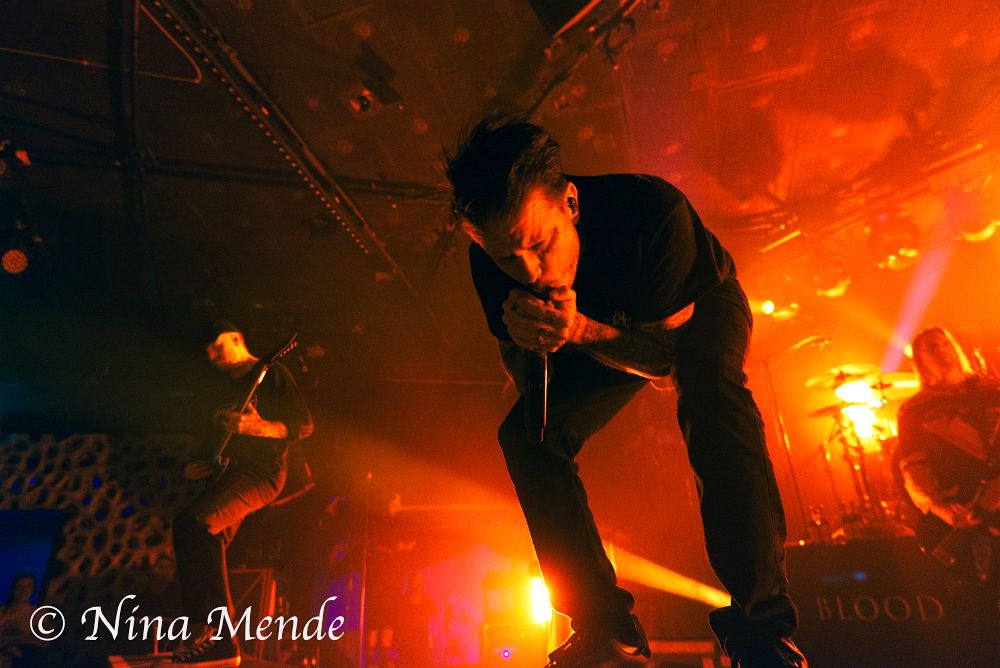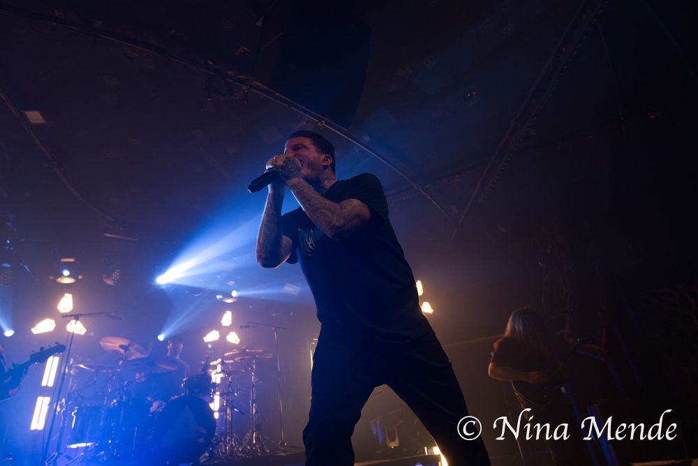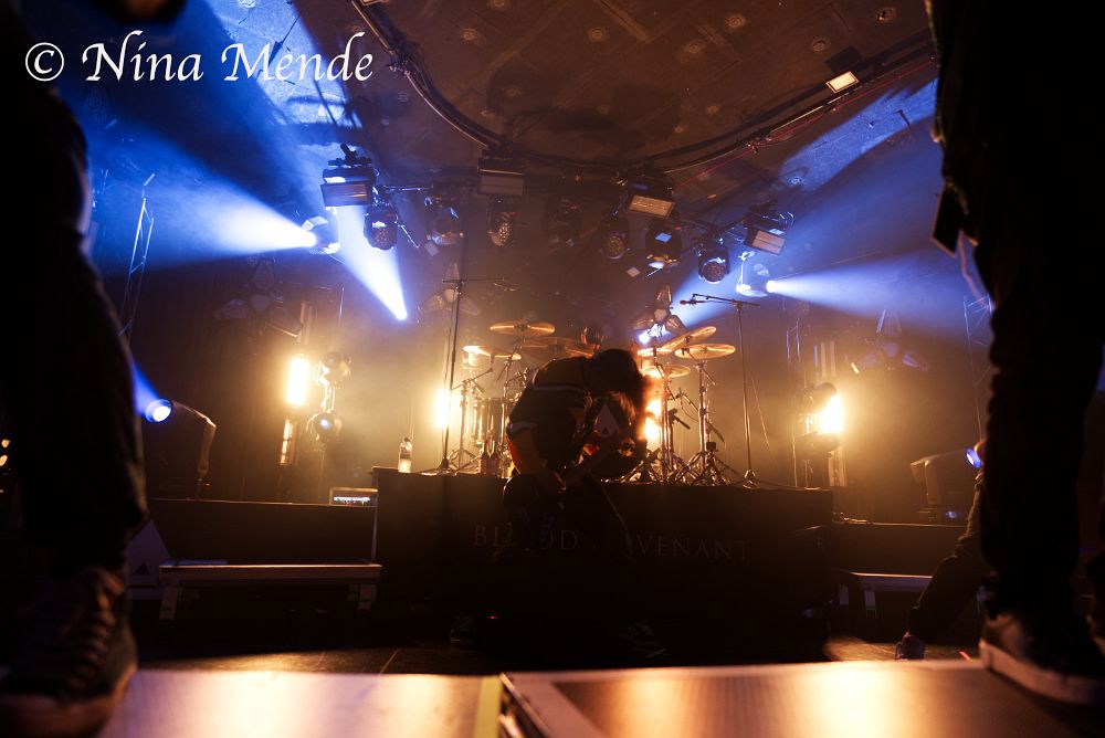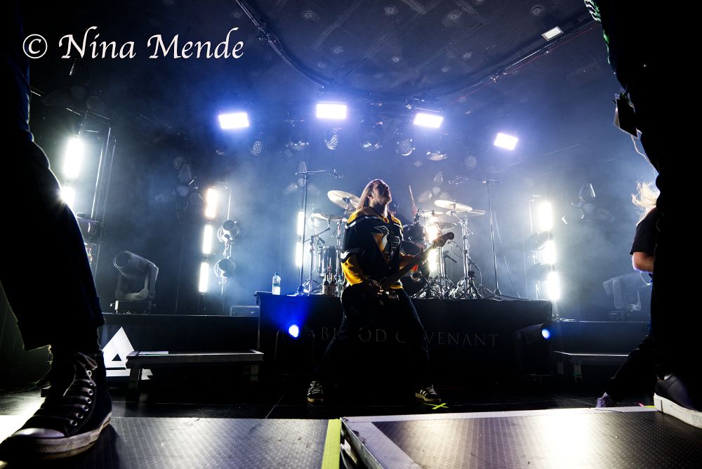 Time for the last changeover of the evening: After the stage has been cleared for ADEPT to enter, the lights went off and the intro of their latest album ‘Blood Covenant’ began, getting the audience hyped up. And as the band finally entered the stage, the fans cheered loudly, singing along from the very first second on. ADEPT owned the stage with their energetic and powerful performance, jumping onto the little platforms that were set up at the edge of the stage. The singer walked up and down the stage, singing to fans left and right.