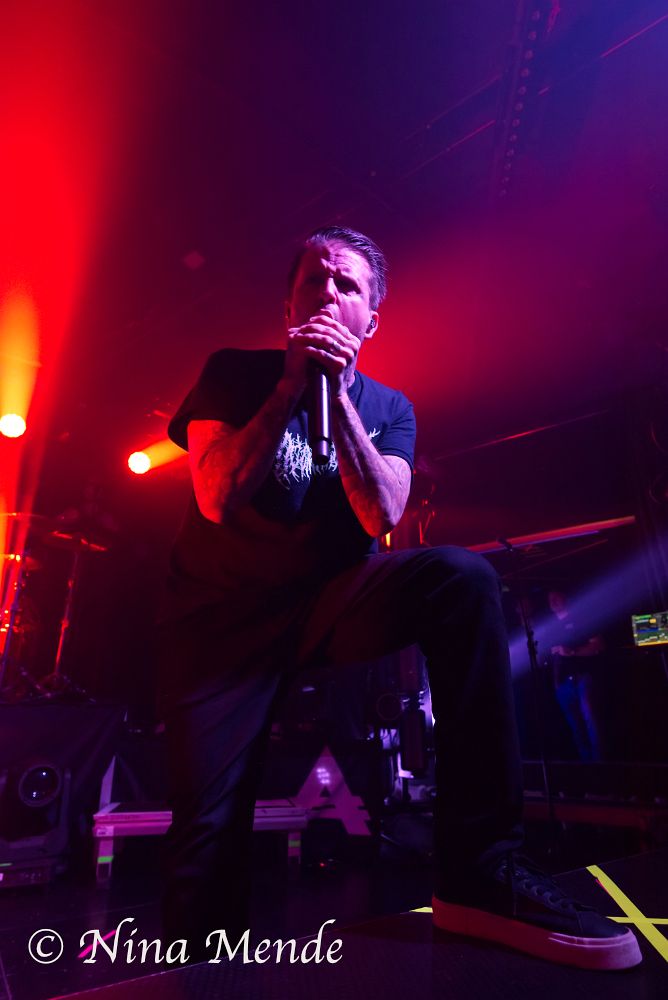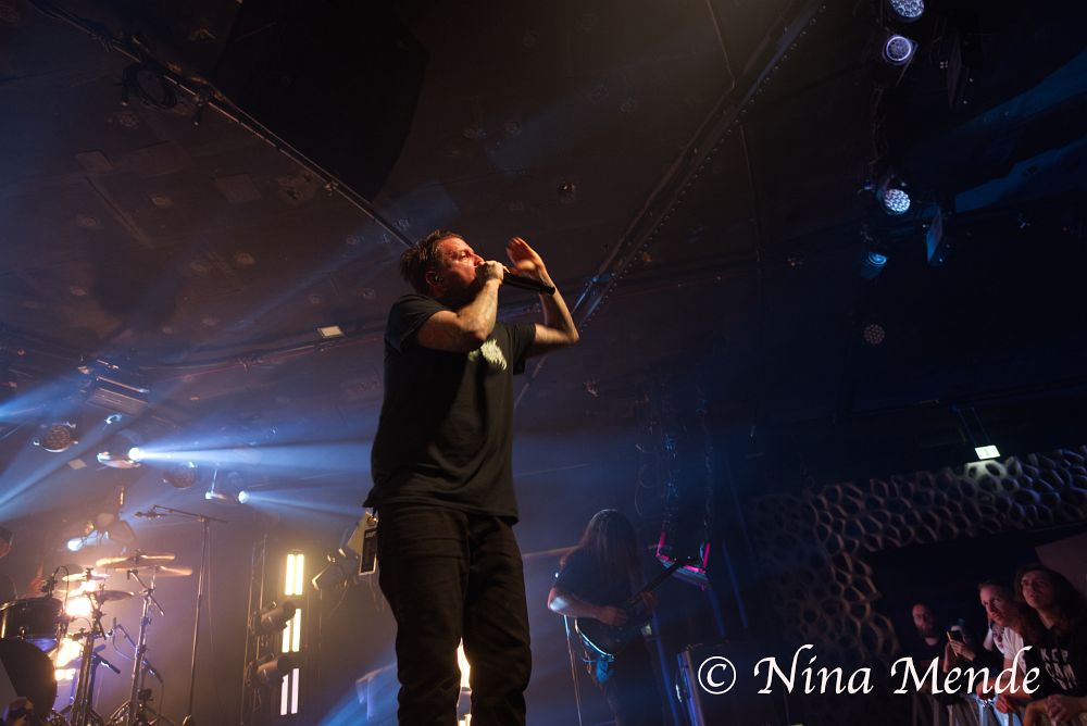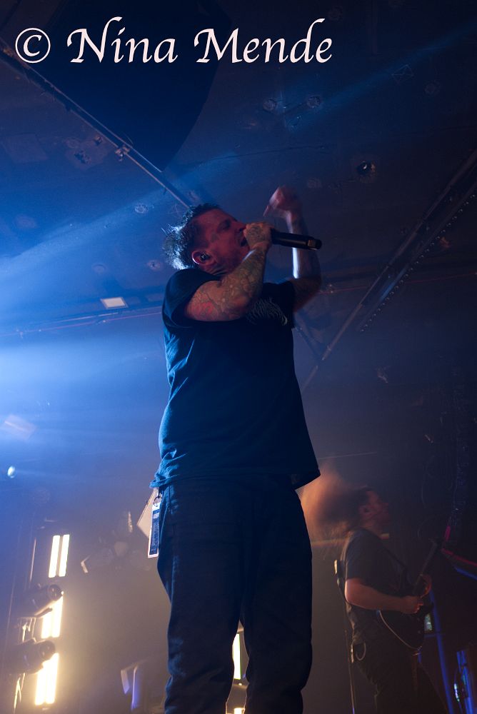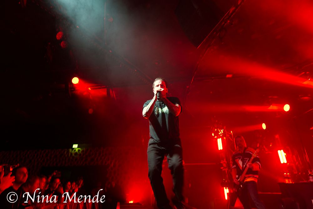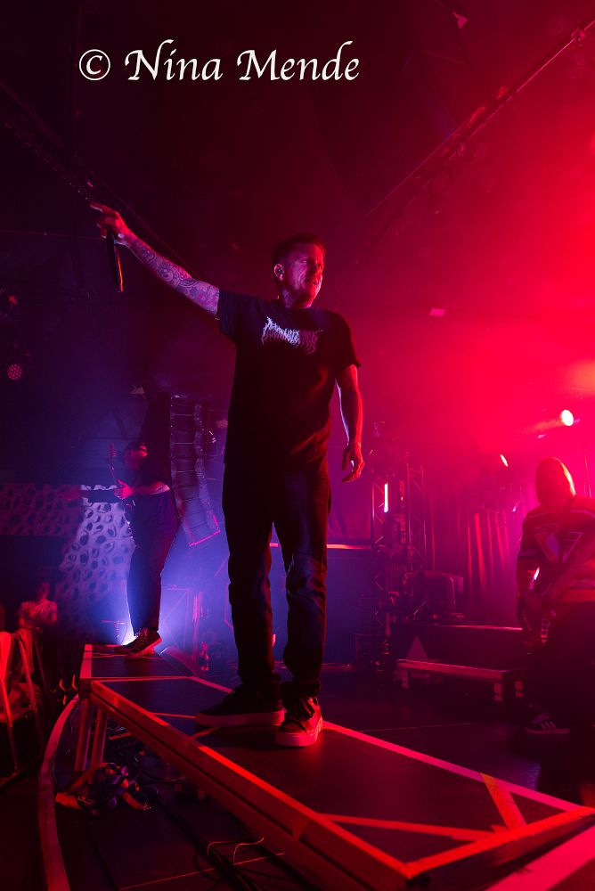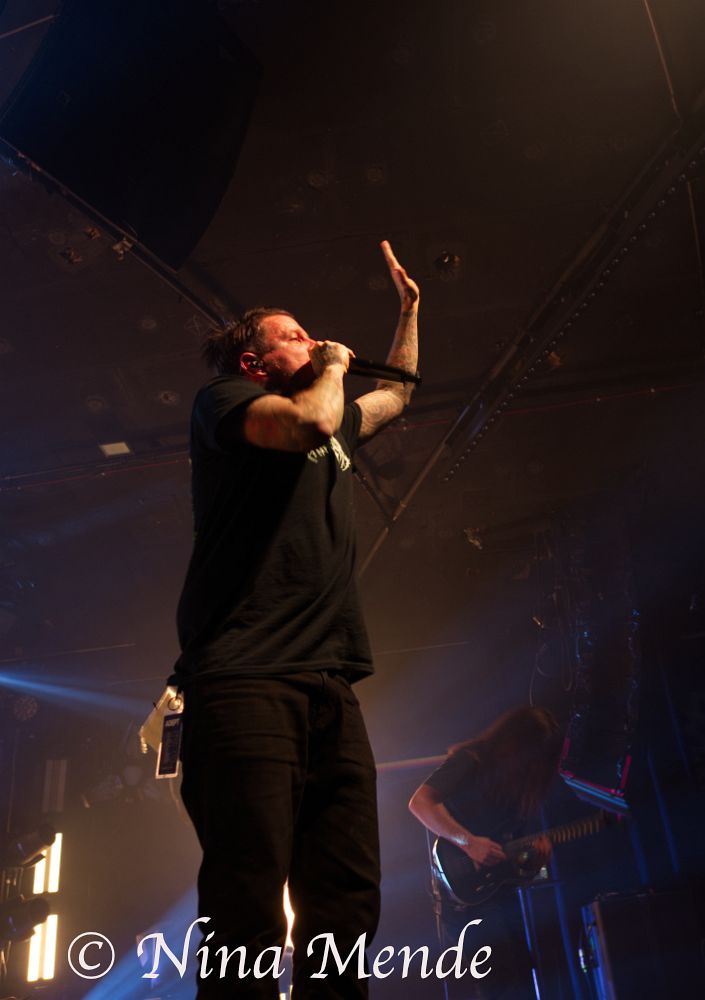 The sound of his vocals seemed to be missing in the center of the stage, and later sounded as if it came and went, but nobody seemed to bother. Instead, the crowd changed back and forth between circle pits, wall of deaths and regular moshing and banging the head. Even if the venue was not fully packed on this Wednesday evening, the audience took up the entire space, moving along to the music. ADEPT played songs off all albums. The intensity of each song was supported by stroboscopic light alongside the otherwise dim red light.