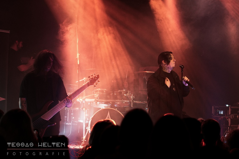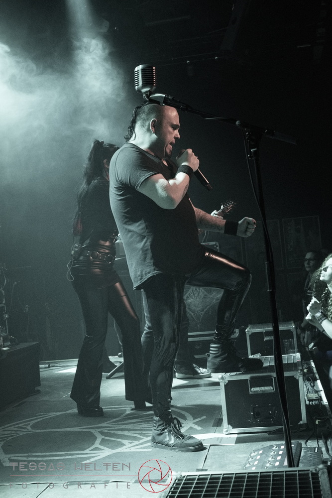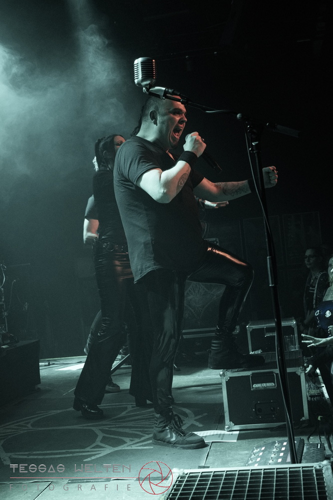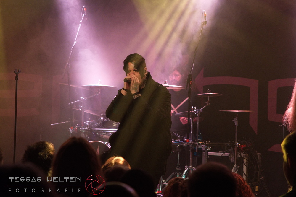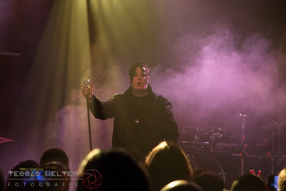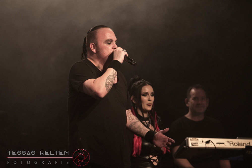 After the intro, the band kicked things off properly with ‘Absolutus Rex / Dominus Omnium’, ‘Es gibt dich nicht’, and ‘Los los los’. The audience was thrilled, and the atmosphere was simply fantastic. Great lighting, great sound - everything about the club atmosphere was just right. At some point, Neill explained that at every show, someone from the crew is celebrated, and that evening it was Rony, the bus driver. The band had created a picture with Rony as a wall artwork, presented it to him, and invited the audience to celebrate him properly.