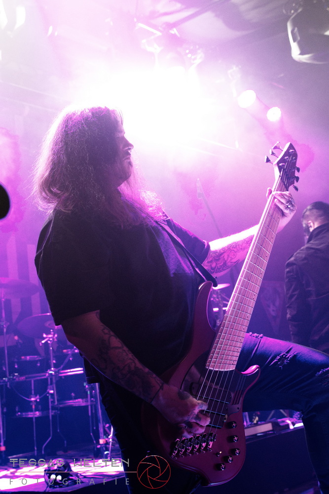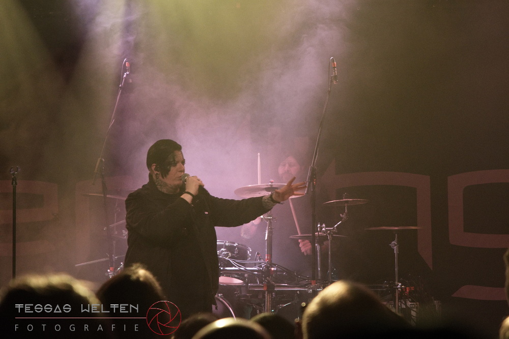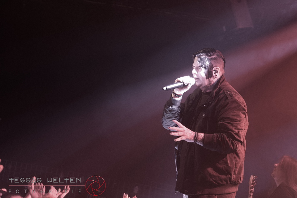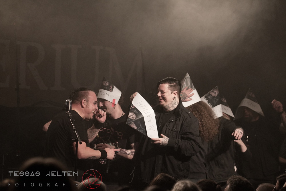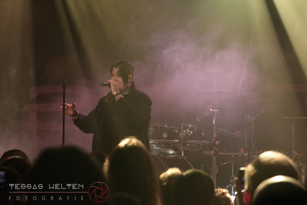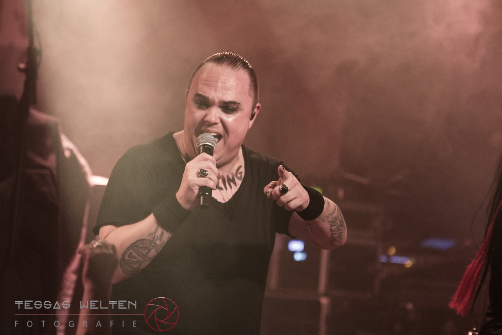 After the intro, the band kicked things off properly with ‘Absolutus Rex / Dominus Omnium’, ‘Es gibt dich nicht’, and ‘Los los los’. The audience was thrilled, and the atmosphere was simply fantastic. Great lighting, great sound - everything about the club atmosphere was just right. At some point, Neill explained that at every show, someone from the crew is celebrated, and that evening it was Rony, the bus driver. The band had created a picture with Rony as a wall artwork, presented it to him, and invited the audience to celebrate him properly.