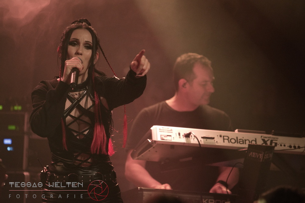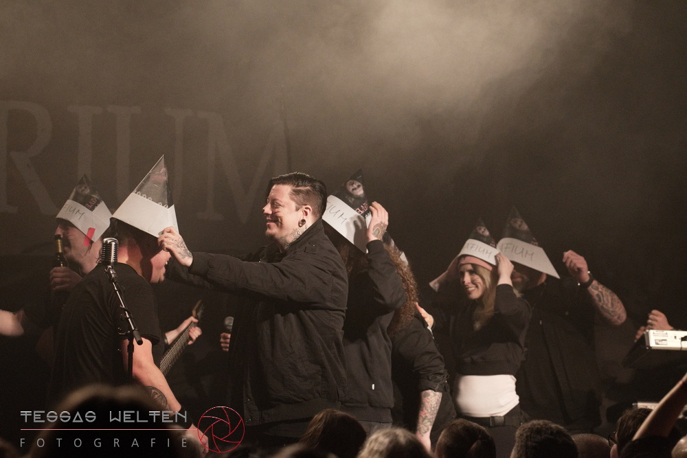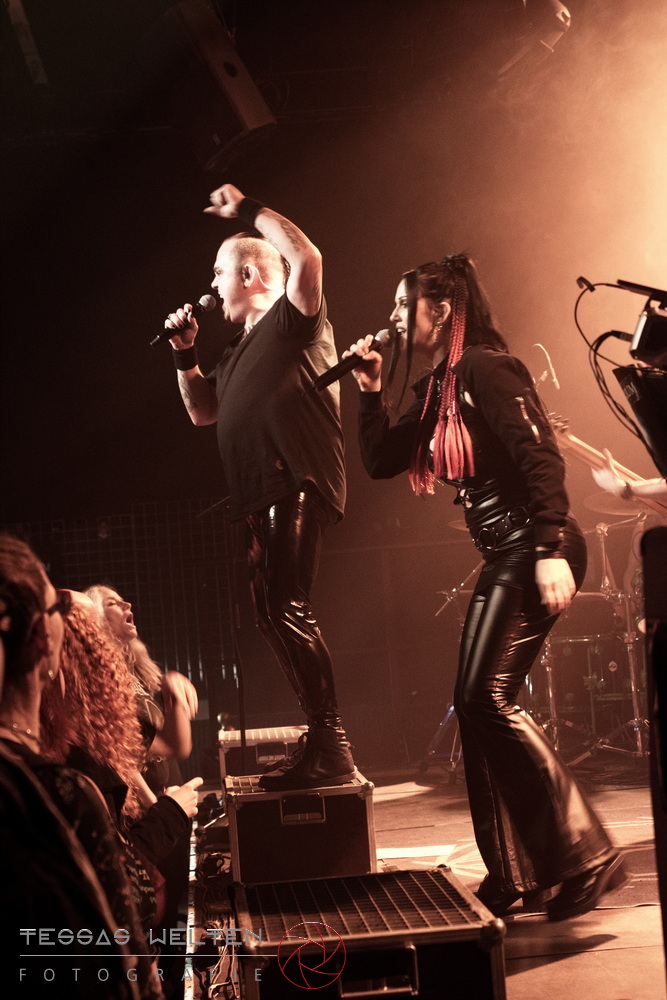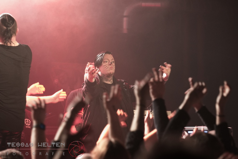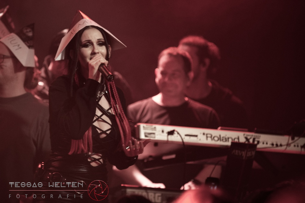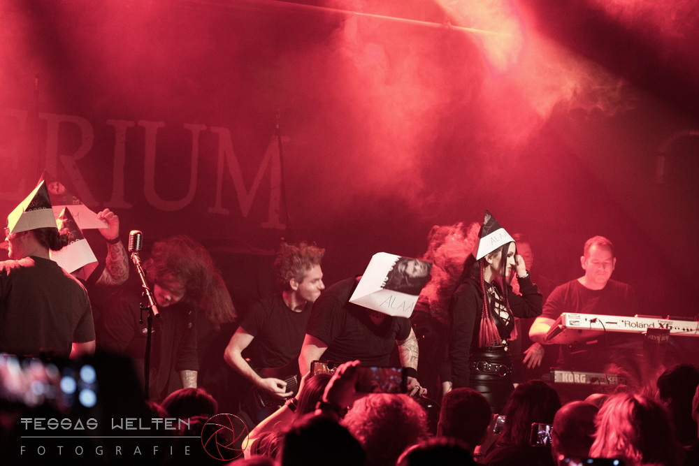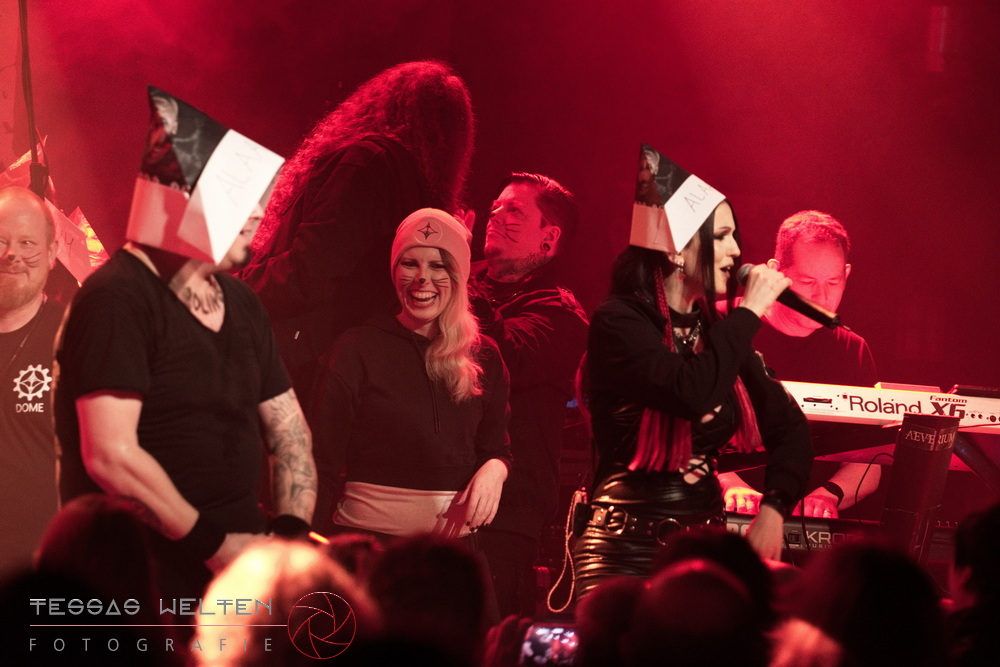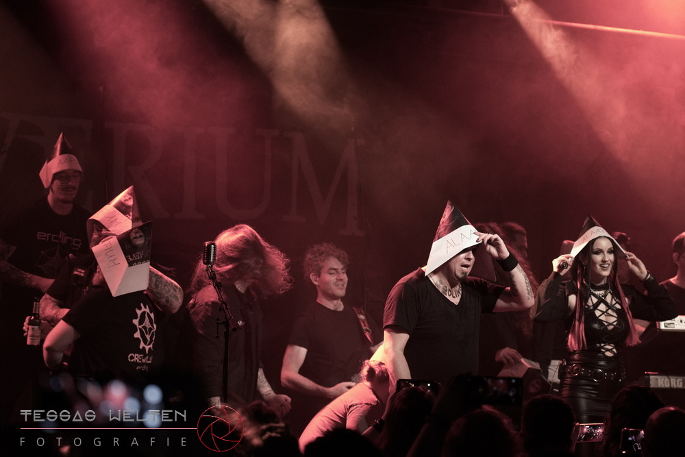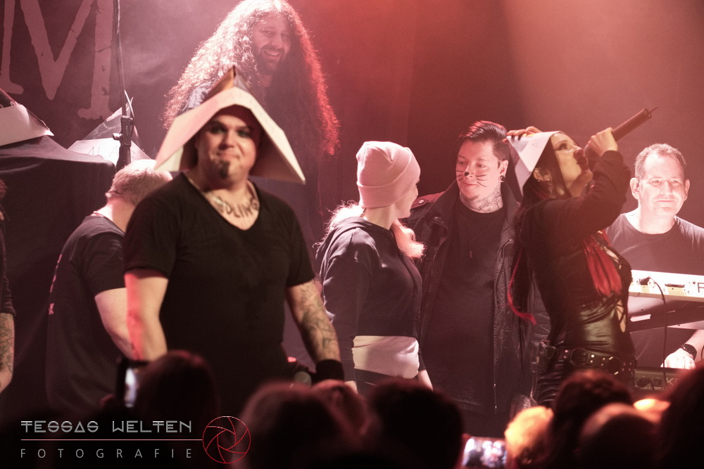 With ‘Return to Sender’, the band got off to a strong start. The audience was immediately on board and celebrated AEVERIUM. The mix of male and female vocals created unmistakable compositions and was truly captivating. At some point in the middle of the show - as a nod to carnival - ERDLING, together with other crew members, appeared on stage, some of them painted and wearing paper hats. The hats were then placed on the members of AEVERIUM. With his black face paint, Neill resembled a Cheshire Cat. For the duration of one song, they stayed on stage as a fun and playful accompaniment.