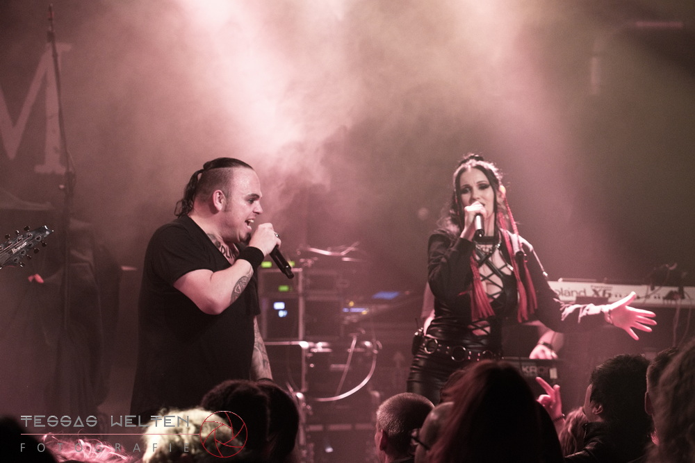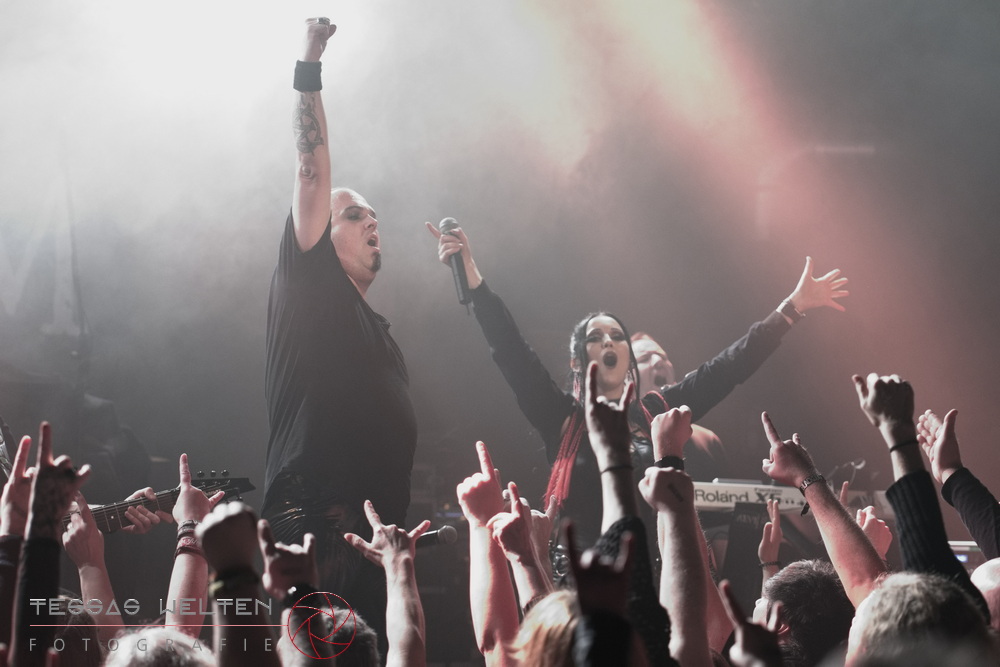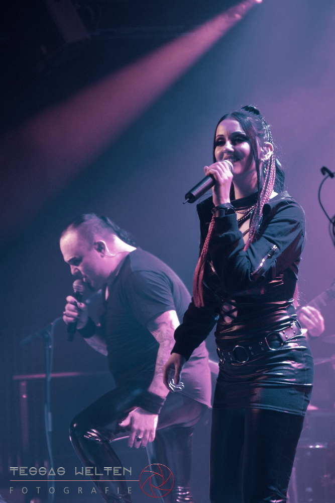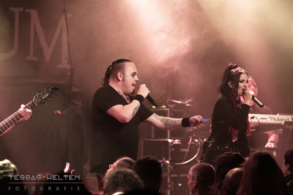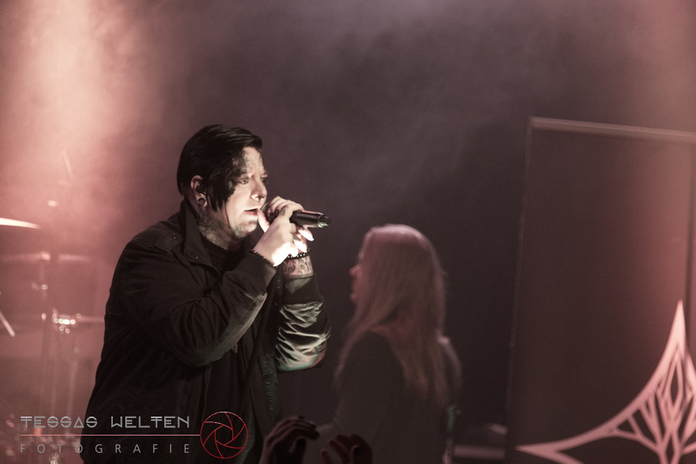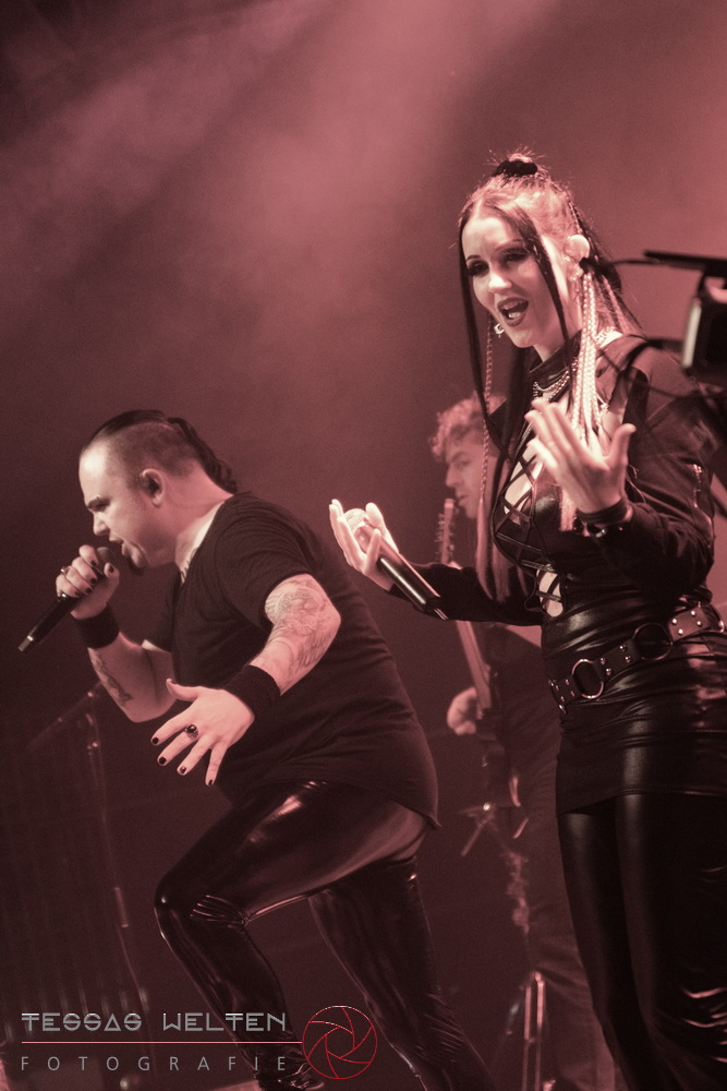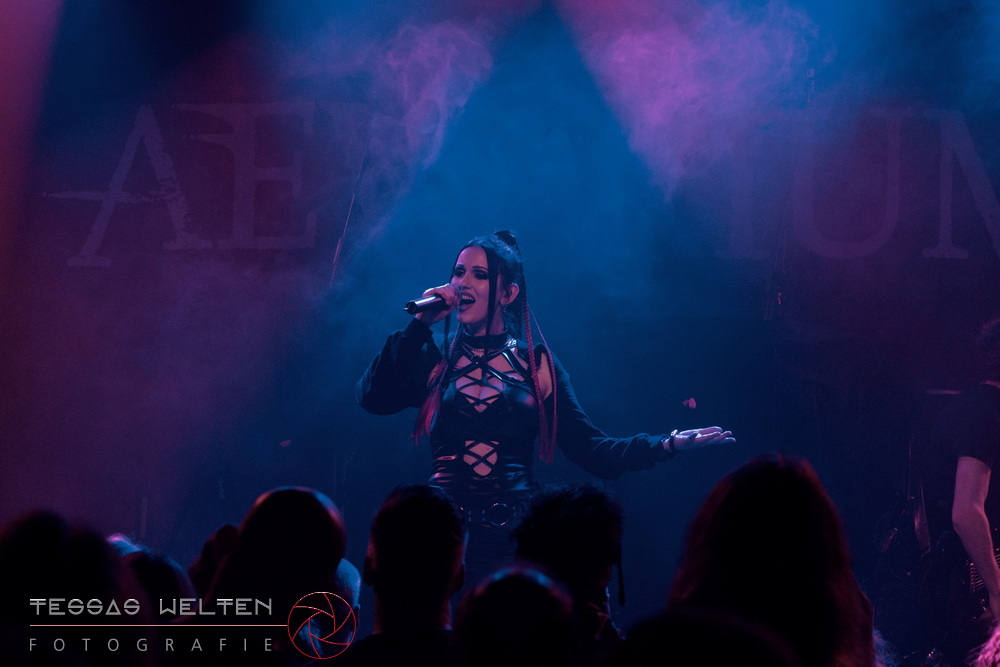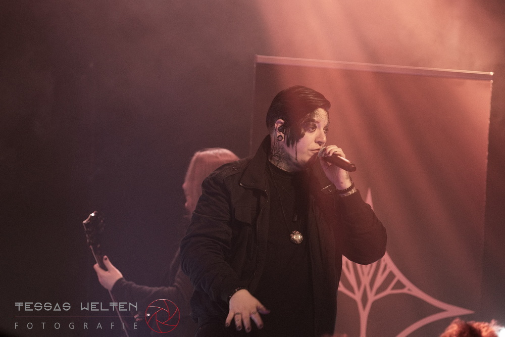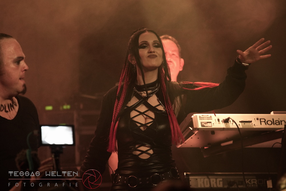 With ‘Return to Sender’, the band got off to a strong start. The audience was immediately on board and celebrated AEVERIUM. The mix of male and female vocals created unmistakable compositions and was truly captivating. At some point in the middle of the show - as a nod to carnival - ERDLING, together with other crew members, appeared on stage, some of them painted and wearing paper hats. The hats were then placed on the members of AEVERIUM. With his black face paint, Neill resembled a Cheshire Cat. For the duration of one song, they stayed on stage as a fun and playful accompaniment.