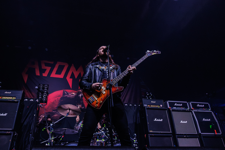 When ASOMVEL took the stage, the volume in the Palladium seemed to double, as they literally hit the ground running. Conan’s bass tone was a distorted, growling monster that rattled the rafters, while Robinson’s guitar work provided a jagged, high-speed edge. The performance was a masterclass in “foot-on-the-monitor” Heavy Metal.