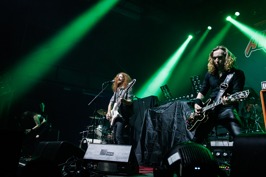 The moment the lights dimmed and the Terminator intro theme began to drone through the PA, the Palladium erupted. AIRBOURNE launched into their latest hit single ‘Gutsy’, and Joel O’Keeffe appeared like a man possessed, his hair already drenched in sweat and beer within the first thirty seconds. The performance was a relentless physical assault; Joel was famously hoisted onto a roadie’s shoulders who carried him into the pit to play a blistering solo in the middle of the crowd during ‘Girls in Black’, smashing cans of beer against his head until the froth rained down on the front rows.