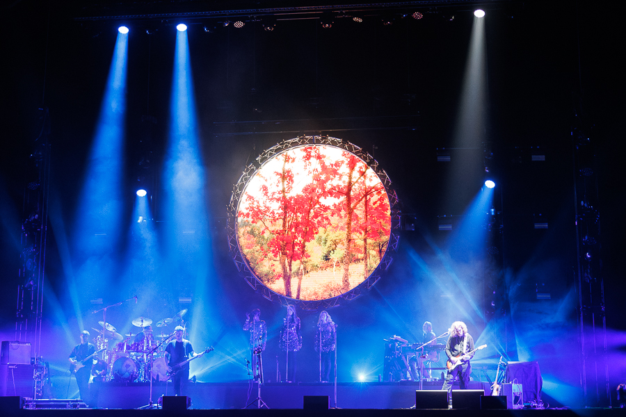 The band kicked off the second half in a colourful and wonderfully vibrant fashion with the psychedelic ‘See Emily Play’. The band then really rocked out with “Sheep”: introduced by a distinctive ‘baa’ from the tape, the driving track unfolded amid a rapid light show in red and white. After ‘Empty Spaces’ impressed with a fantastic groove, ‘Hey You’ created a reverent atmosphere - the visual highlight here was guitarist David Domminney Fowler, who stylishly played his acoustic guitar mounted directly on a stand.