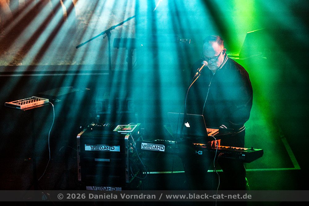 The support act WIEGAND opened the evening with a dynamic and engaging set that perfectly complemented the Dark Wave atmosphere of the headliners DIORAMA. The duo impressed the audience with their synth‑driven sound, combining melancholic undertones with catchy, danceable rhythms. Their music has become known for its emotional depth and memorable hooks, with live performances marked by a personable stage presence and strong connection to the crowd. During their set, WIEGAND played some of their fan favourites like the punchy ‘Alive’, the infectious ‘Connected’, and the dark yet catchy ‘Pied Pipers’.