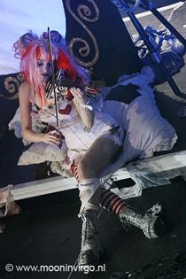 The final night of October, time for the Emilie Autumn concert in Utrecht. This night was special for another reason, it was Halloween. Because of Emilie's habit to call her audience muffins, there were girls passing out muffins. Other candy was passed out during the concert as well and paper plague rats. The audience was dressed up lovely but the ladies on stage… they looked even better and they had the attitude and the sound to match it!