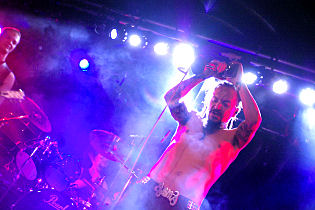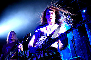 Accompanied by the listeners´ friendly applause, the five-piece consisting of Ari Koivunen (vocals), Ben Varon (guitar), Silver Ots (guitar), Juhana Karlsson (drums) and Pekka Johansson (bass) came on stage. There was a wind machine that was placed right in front of them making their long hair flying around - a nice effect that fitted well to the energizing performance and the powerful and melodic death metal songs. Though their style was harder and every now and then garnished with growls, it strongly reminded me of hard rockers SKID ROW which may also be basing on the fact that the constellations and outer appearances were pretty alike. Guitarists Ben Varon and Silver Ots were striking big poses as well as bassist Pekka Johansson whereas front man Ari was screaming, shouting, growling and singing at the top of his lungs. Considering his young age, the guy really has got an exceptional voice and a lot of charisma he was able to convince with the listeners. Therefore, AMORAL left a satisfied audience when they made room for BEFORE THE DAWN.