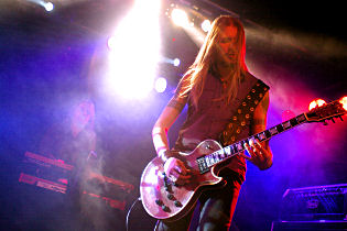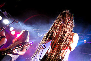 When the lights went off and the band members walked on stage, everyone started to bang the head. Topless lead singer Tomi Joutsen grabbed his golden old-fashioned microphone and shook his extremely long dread locks while he was intonating the opener `Silver Bride´. As I stood right in front of him, I needed to take one step back to not to be hit by his hair while the folks next to me were going wild and chanting along. The well-chosen set included older stuff such as `The Castaway´, `My Kantele´, `House of Sleep´ and the frenetically celebrated `Black Winter Day´ as well as pieces like `Sampo´, `Majestic Beast´ (which came as a real bombshell), `Sky is Mine´ or `From the Heaven of my Heart´ taken from the most recent album ´Skyforger´.