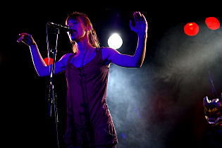 Dancing barefoot and wearing Pippi Longstocking-like tights, the ethereal and petite front woman presented the songs in a very cheerful and charming way. Moreover, Maria’s body language contributed to the delightful performance: Moving like a graceful ballerina, she attracted a lot of attention in particular besides her emotive vocals that are able to cover a wide range and to express very different feelings. Furthermore, she communicated with her listeners in a warm and friendly way. The performed songs were mostly mid-tempo pieces, but CHAPEAU CLAQUE also delivered more forceful stuff such as the furious `Rot´. After two hours, the band members received frenetic applause for a stunning concert full of poesy and I’m sure that I will see them live on stage again.