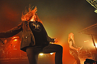 The mood could not have been better. HAMMERFALL offered an extremely harmonious show on stage, even if one as a fan could worry sometimes about both guitarists, because when both were standing on the built up platforms, their heads were nearly touching the spot lights on the ceiling. Also singer Joacim delivered a perfect show and his voice was convincing very well. The sound was also very good, even if a little bit too loud. Finally after three additions and euphoric applause, the evening came to an end.