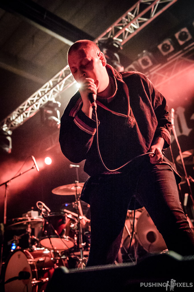 Shortly before 8pm, the lights went low and a mystically sounding intro started resounding from the speakers. The members of ONDT BLOD went on stage and started to perform their version of Hardcore infused version of Punk. Singer Aslak Heika Hætta Bjørn got rid of his traditional Norwegian robe pretty soon, as it was already quite hot inside the venue.