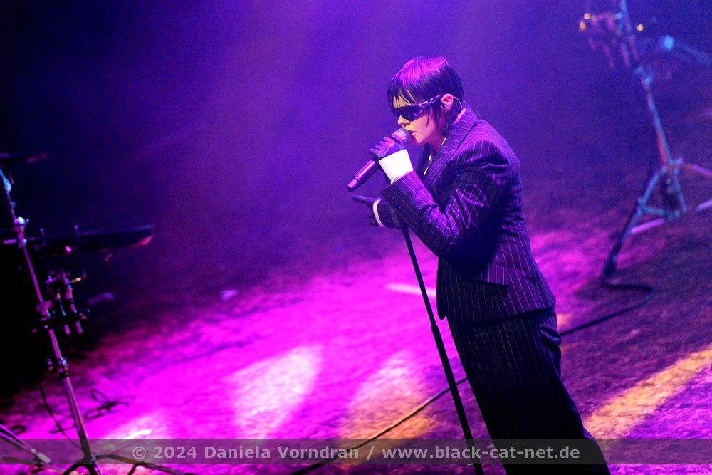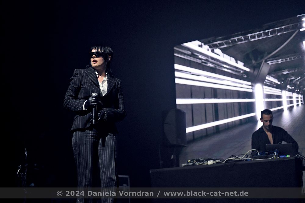 The stage of the Turbinenhalle is huge but before you could wonder if Joanna Reinikainen might look lost up there, she made very clear that she doesn’t. She commands the stage from the very first moment and NITZER EBB’s Douglas McCarthy might be one of her inspirations when it comes to stage antics - certainly not a bad thing! Dressed in a black suit, wearing dark shades and now with short black hair there is certainly a similarity between her and the NEP frontman. And I like that! The huge video screen behind her probably helped to fill the giant place, and it took me a moment to realise that there’s actually a second person on stage behind a rag full of gear. The computer-generated animations looked great on the screen but in the end, REIN does not really need them, they are just a bonus. She’s granted a generous set of twelve songs, allowing her to present all the facets of her two albums and the couple of EPs she’s released. The Pop side of it is probably not exactly my cup of tea but is impressive how effortlessly she combines all the different styles while maintaining a true REIN vibe. It’s like a shot of fresh blood into a scene that can feel old and stale at times.
