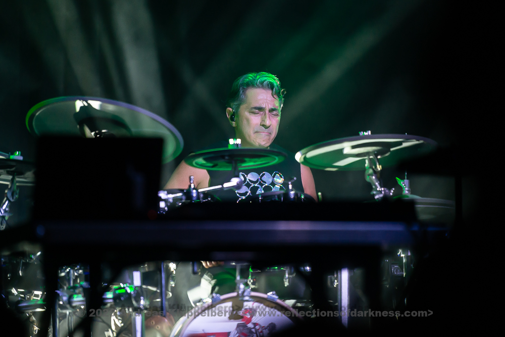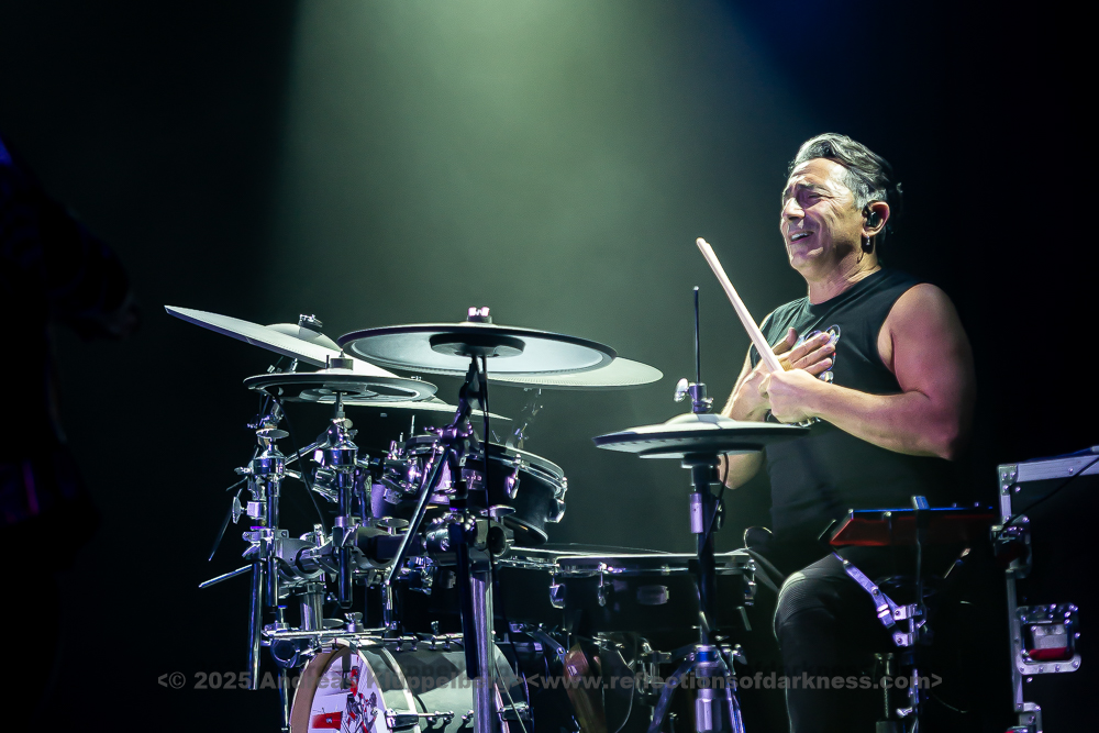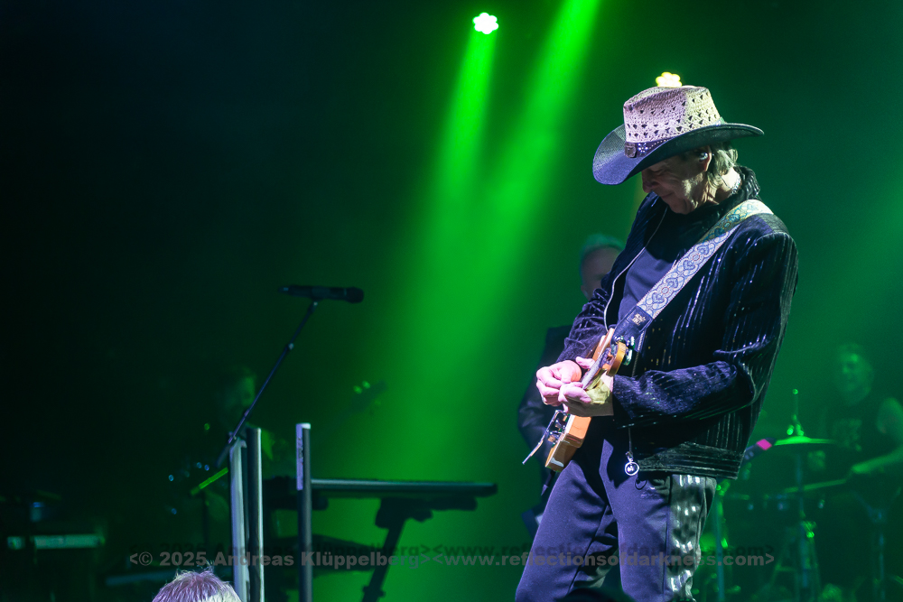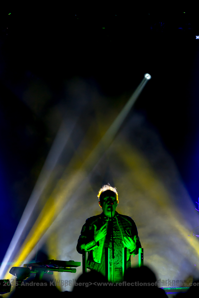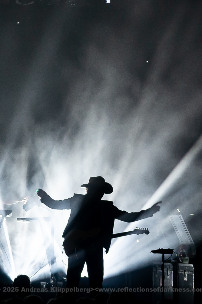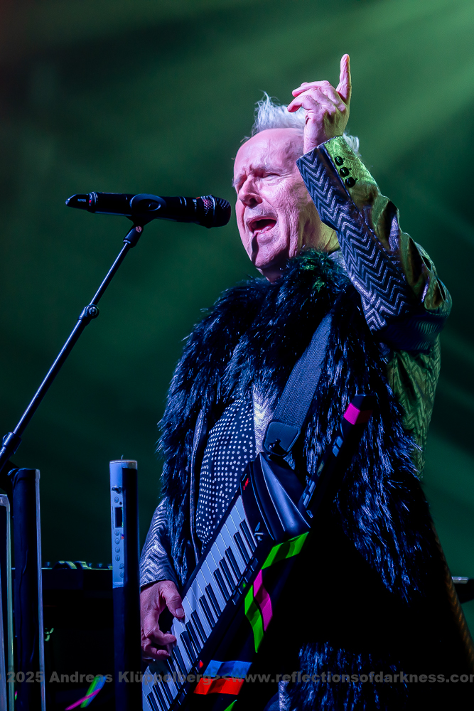 After a few songs - the first three or four pieces - the mood became noticeably livelier; at this point, Howard had his coat removed by a crew member and put on a colourful motorcycle jacket. Strong colours, eye-catching details - a stylistic break from the opening look, but fitting for the now increasing energy of the set.