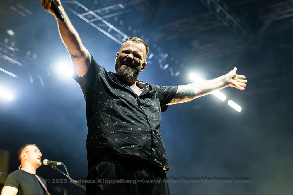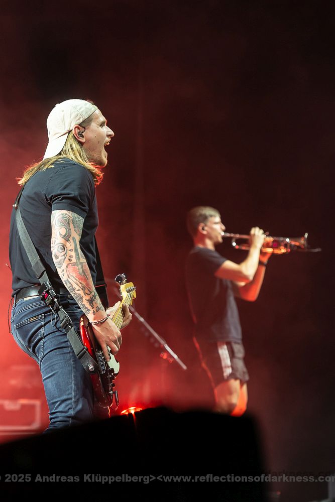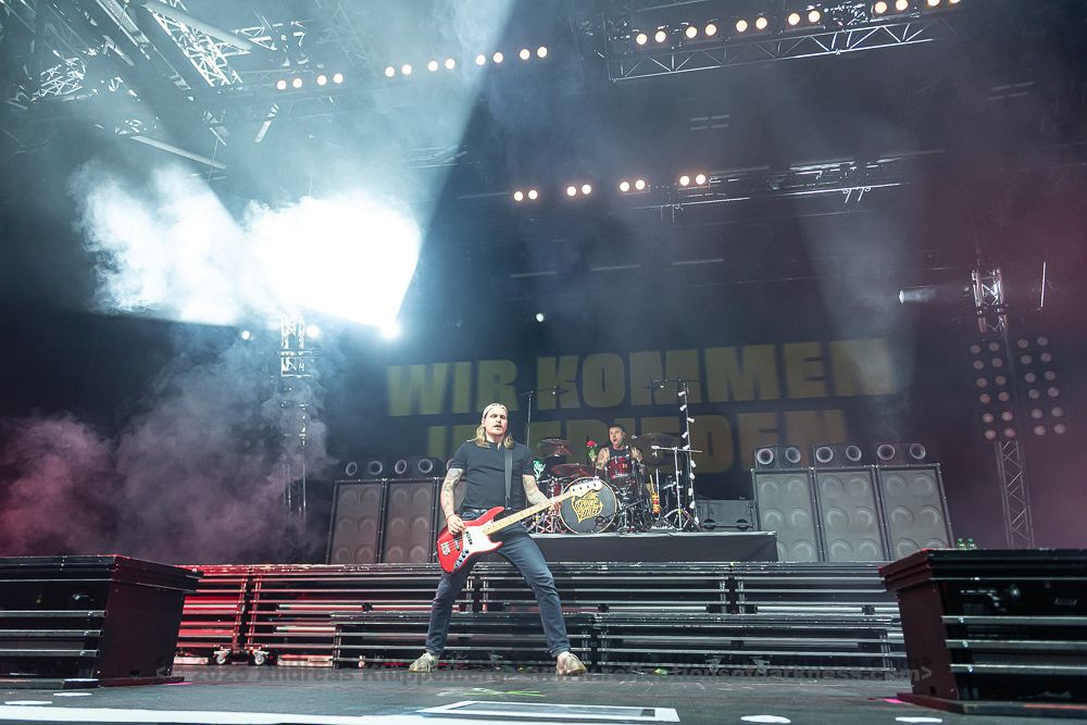 The song ‘Wenn’s morgen vorbei ist’ ended the main part after 90 minutes of playtime. However, the audience refused to let go and brought back the band by singing the chorus ‘Scheissegal, wir ha’m gelebt’ for minutes. A visibly moved Monchi returned from backstage and mentioned that this felt like homecoming. The encore then continued for five songs and contained a surprise rendition of EMINEM‘s ‘Without Me’ by trumpet player and background singer Max, who delivered the rap lyrics flawlessly. The band then delivered a second encore with two songs, closing out the memorable evening after two hours of playtime with the iconic ‘Komplett im Arsch’, so that everyone got their full share of Punk Rock, coupled with a solid dose of beer and sweat.