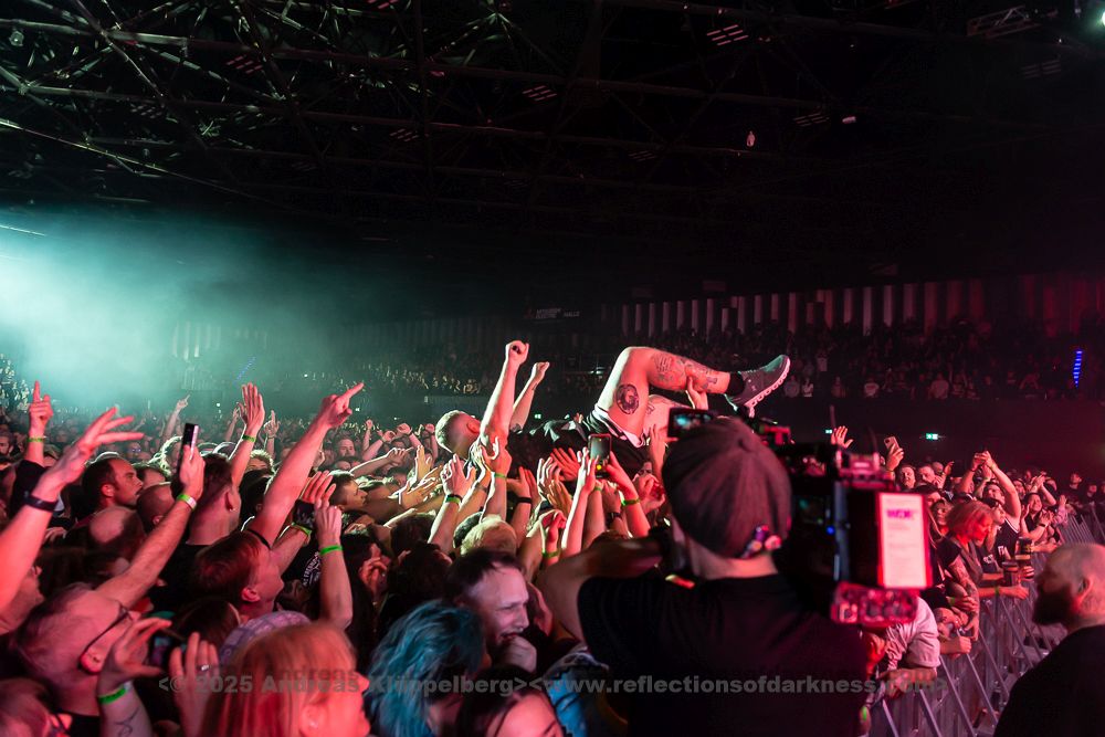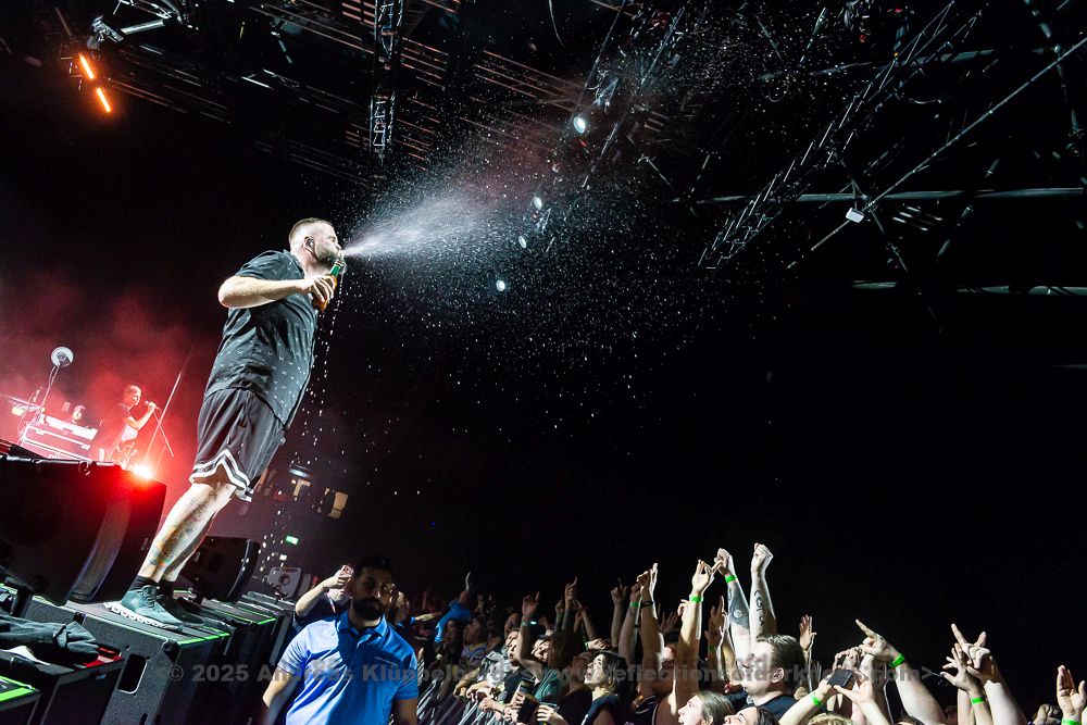 Singer Monchi did his part to fire up the crowd. Being the professional he is, he engaged the audience in singing contests and alternated expertly between throwing dozens of (plastic) beer bottles into the crowd and opening them and dousing himself and his immediate surroundings with the bottle contents, all while handling the singing job. As if this was not enough, Monchi also kept one lad - who seemingly got carried away and unleashed a fire extinguisher in the crowd - from getting evicted, asking security to just seize the device and not throw out the fan. Later in the set, a sizeable smoke bomb was ignited, adding a New Years’ Eve feel inside the arena.