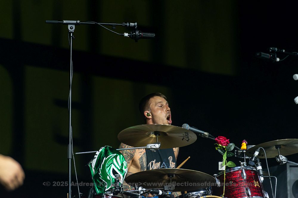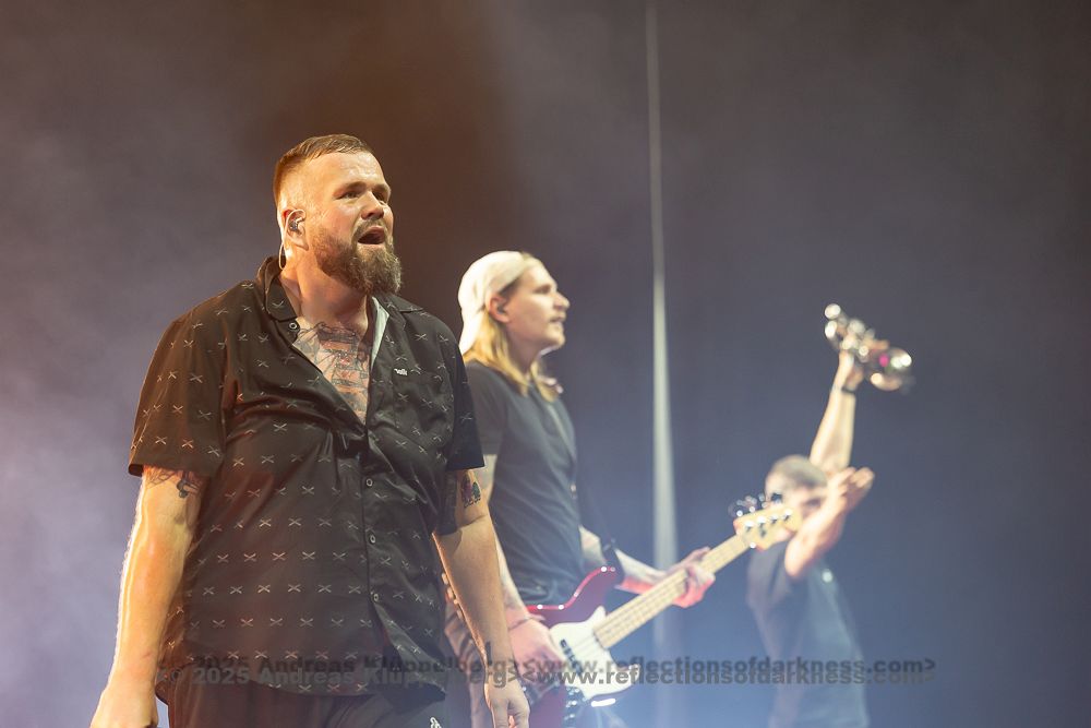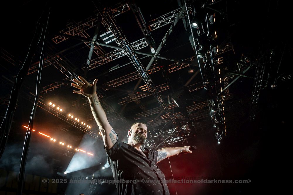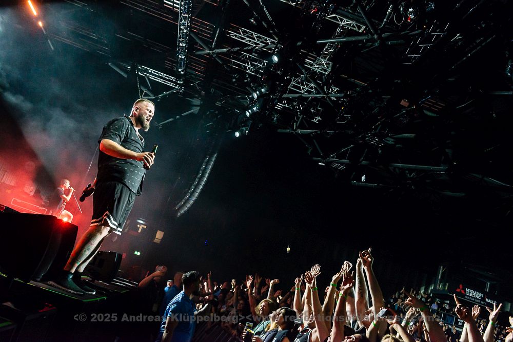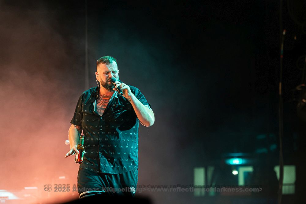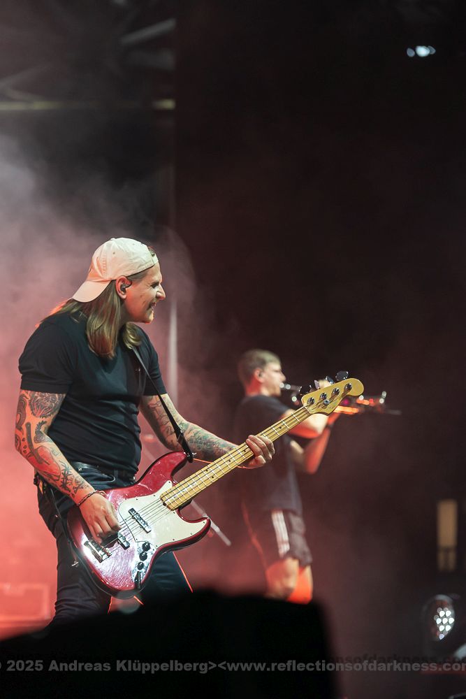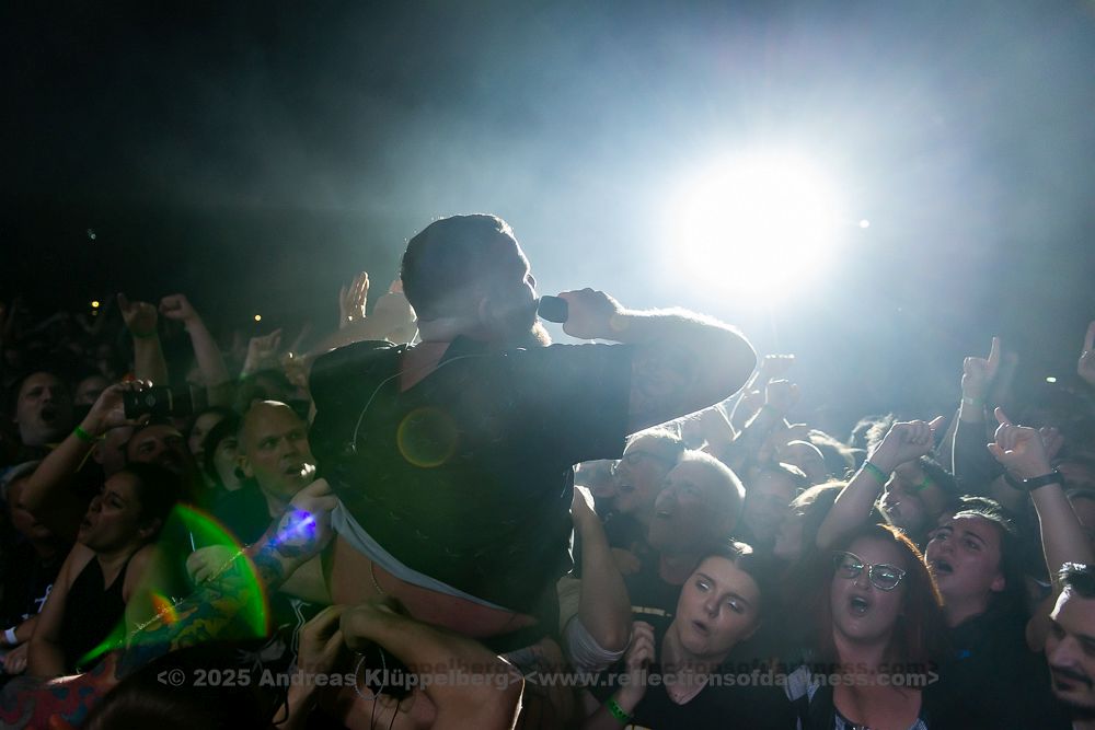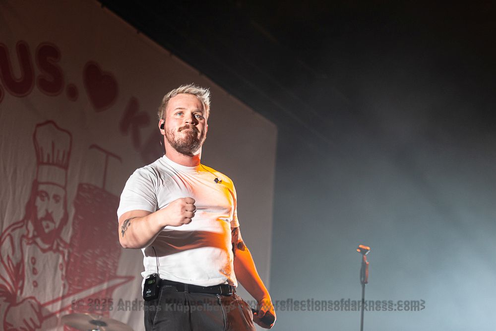 The catchy four-chord riffs, the relatable lyrics, and the melodic choruses did their part to fire up the crowd, which almost immediately started spinning up circle pits. Singer Eric and his band mates conquered the hearts and minds of the spectators in no time, which is not completely surprising in a town home to ‘DIE TOTEN HOSEN’ and ‘BROILERS’, but was nevertheless nice to marvel. The lyrics about working class struggles, emotions, and substance abuse, paired with a solid political message found their way into the hearts of the audience and the 30 minutes playtime went by pretty quickly. It is commendable that FEINE SAHNE FISCHFILET uses its reach to offer a platform to the next generation of their genre.