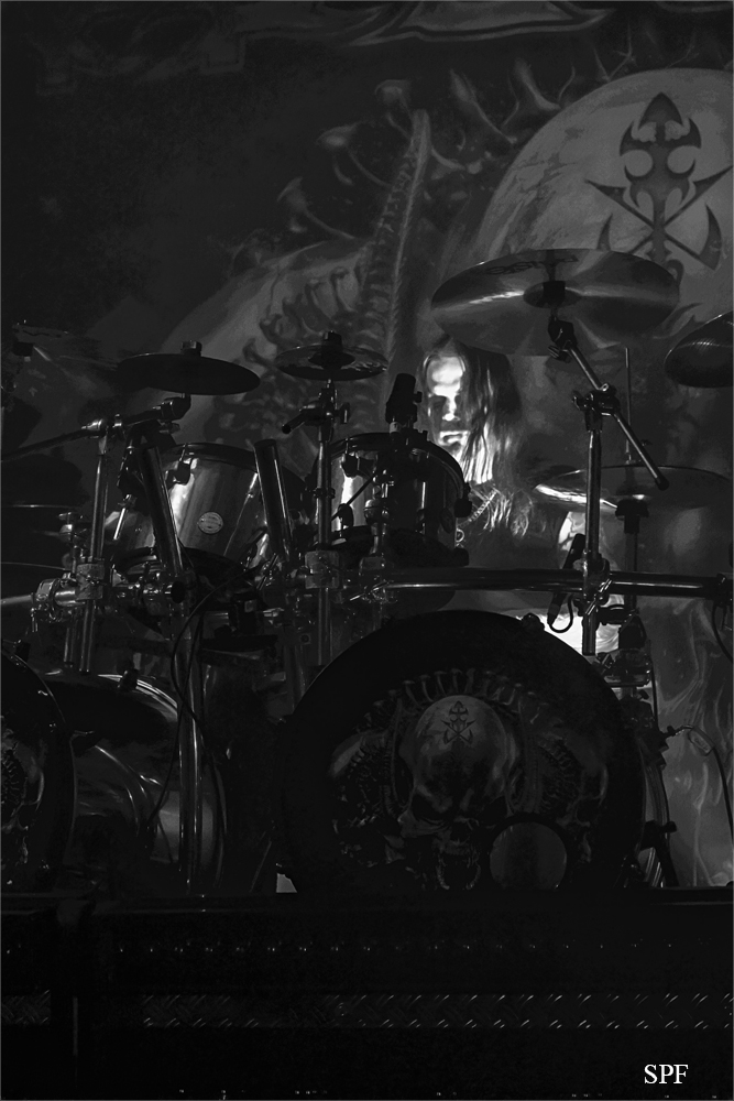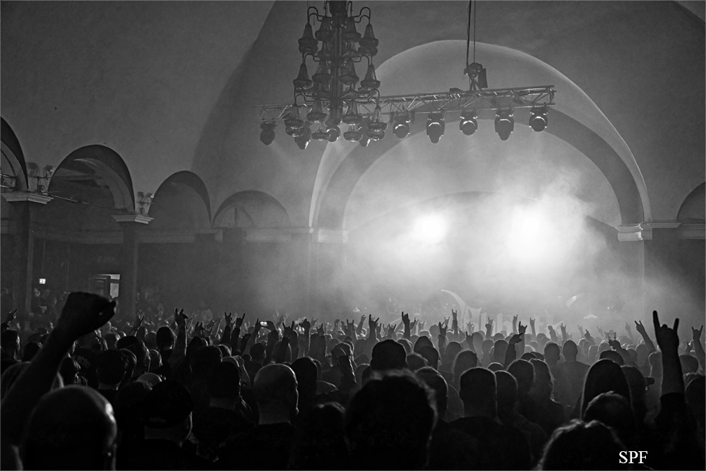 While the show wasn’t completely sold out, the floor was densely filled, and a large crowd had gathered outside the immediate stage area as well. The atmosphere was correspondingly lively and filled with anticipation for an intense evening of Metal.