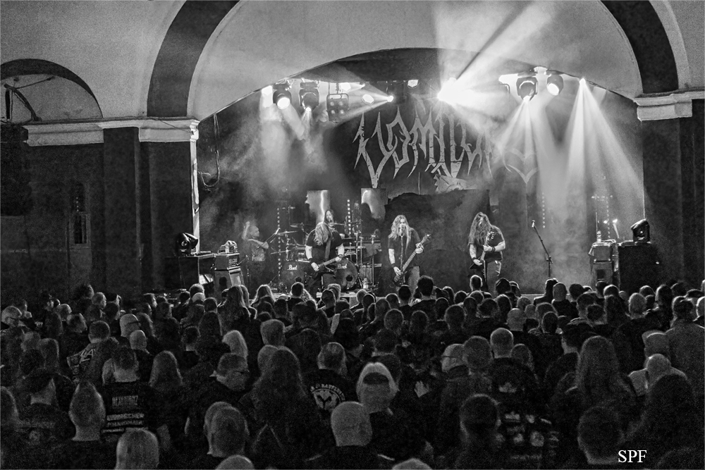 VOMITORY kicked off the evening with a relentless and no-frills set. From the very first riffs, the band delivered exactly what one would expect: raw aggression, tight playing and no unnecessary gimmicks. The early crowd was already surprisingly active, with headbanging and first mosh pit movements setting the tone for the rest of the night.