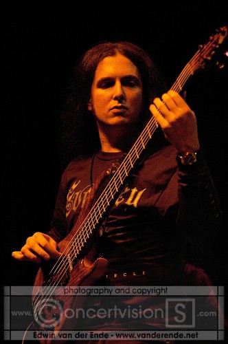 It was strange to see such a well-known name in the progmetal scene as a support act. The Swedish guys from Evergrey did a lot of shows in The Netherlands and most of the time with their own club tour. They started more than ten minutes earlier and much unexpected front man Tom started to sing. The noise in the audience stopped suddenly.