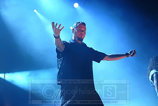 Staring off a concert as the first support act normally leaves you with a lot of people just staring at you while they wait for the headliner to start. Not so with Turisas because there seemed to be quite a lot of people in front of the stage that went wild over this band. And to be honest, they were right. This band might not make music you'd play at home at a quiet night but they kicked ass and can certainly be a big hit at any festival. The music was played very tightly and the enthusiasm of every single band member was exemplary. This band should be booked at a couple of summer festivals, either to wake up people or to prolong the night. With some good detailed sound and plenty of light this was a good, no, a very good show.