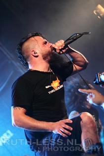 BAM! And there’s KILLSWITCH ENGAGE. As soon as Adam, Joel, Mike, Justin and Jesse enter the stage, the crowd goes berserk. Kicking off with ‘Numbered Days’ the crowd is instantly ready for some seriously moshing and stage diving. *Note to the enthusiastic jumpers: please jump OVER and not INTO the first row of people, since photographers obviously don’t see you coming when they’re watching through their lenses… I had seen KILLSWITCH ENGAGE before with their previous vocalist Howard Jones and was pretty impressed by his amazing vocals. Fortunately, front man Jesse proves to be more than up to the job with his wicked screams and even so powerful vocals. Convincing the audience is not really needed during their set and every song is welcomed with massive cheers at Tivoli venue. After a couple of songs, ‘Rose of Sharyn’ from the album ‘The End of Heartache’ is dedicated to former singer Howard.