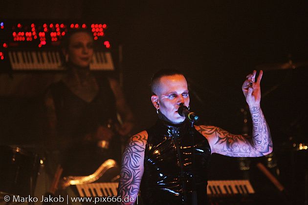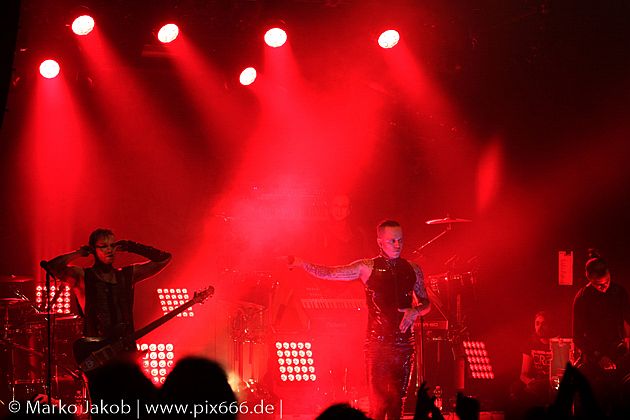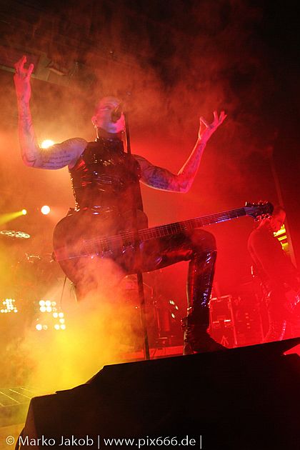 After a break of about 30 minutes, LORD OF THE LOST entered the stage, no longer in merchandise and underwear anymore. Singer Chris was in his Latex outfit again today. From the start the band rocked right out – ‘On This Rock I Will Built My Church’ was the first hit of the evening. The band was on a high right from the start and of course, that quickly spread to the audience. During ‘Sex On Legs’ they made the club boiling for the first time. The new songs also got off to a great start and worked perfectly live. The great ‘Naxxar’ was followed by ‘Black Halo’, accompanied by rhythmic clapping from the audience. The light show, as always with LORD OF THE LOST, was something special. “It’s pretty full here”, Chris said and told how back in 2011 the band had played in the Columbia Theater, in the small room next door, where today the range of merchandise was. Back then, they had performed to about 52 people! Of course, today there were a lot more - the club was almost sold out. And as usual, the fans provided a really great response to the song ‘Prison’, causing one of many goose bumps moments!