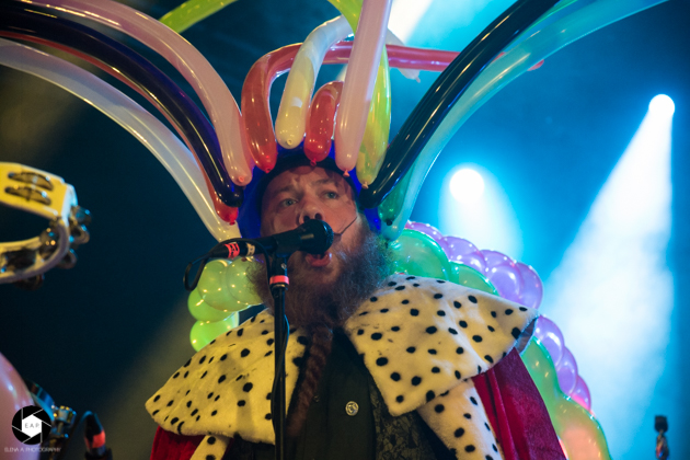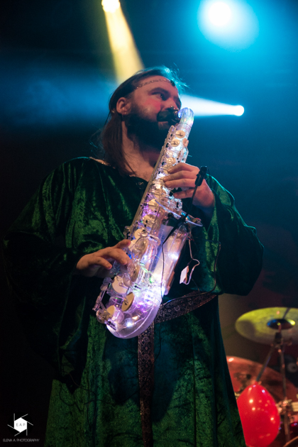 Their amazing energy radiated through the whole crowd immediately. With their funny costumes, from cute princesses to kings, they set the tone with their first song ‘Fiøsnissens Fjaseri’. The creative use of LED lights in their outfits and instruments was visually also very well welcomed by the people. The second song, ‘Kjettaren mot strømmen’, was as energetic as the first one and brought the crowd to dance. The latter only could guess that their songs are about fun, celebrating and drinking even not by understanding the mixed troll language. The band interacted a lot with the audience by talking and throwing balloons and picks to the people. Musically, the popular BRITNEY SPEARS cover ‘Toxic’ and ‘Solskinnsmedisin’, better known as the cabana party song, were particularly convincing. For the latter, a polonaise was held through the Kulturfabrik. It was led by bassist Lodd Bolt, who wasn’t deterred from taking the crowd outside.