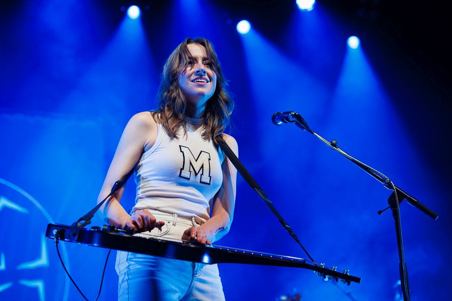 ‘Jessica’ by THE ALLMAN BROTHERS BAND follows the lively beginning and is the first of three cover songs. Fans of the British car show Top Gear will instantly recognize the show’s theme tune in this instrumental, where Megan Lovell in particular gets to shine on her lap steel guitar and earns herself some well-deserved applause. After the sisters confidently play their way through their discography as the songs continue, the four musicians gather in a small circle at the front of the stage for ‘Might As Well Be Me’. Bassist Tarke Layman has switched to the double bass and drummer Ben Sattterlee has set up a single drum. Singer Rebecca Lovell describes that this is how they used to perform as a bluegrass band in her homeland.