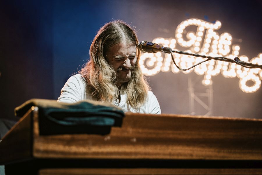 A single microphone is set up, the musicians gather around this microphone, and the acoustic session can begin. The quite chilling ‘Might As Well Be Me’, a quiet bluesy track, is not the kind of song you should expect euphoric applause for, but on this evening all the floodgates burst for the first time. The band is euphorically cheered for a minute or more. Meanwhile, the visibly moved band is handed a drink and enjoys the moment, then thanks the audience and performs ‘Southern Comfort’ and ‘Crocodile Song’ (another cover song by ELTON JOHN) in the same way. Finally, with the world-famous cover song, the audience completely takes over the singing and continues until the band members return to their electrically amplified instruments and gradually introduce the finale.