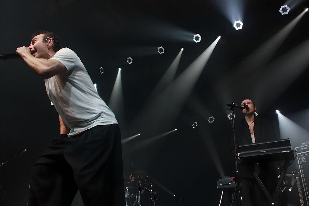 The concert opened with the iconic ‘Tam de nas nema’, immediately setting a powerful tone for the evening. As the energy in the venue grew, the band followed with ‘Vidchuvaiu’, ‘911’, and the heartfelt ‘Kvitka’, filling the hall with deep emotion. One of the most moving moments of the night occurred when Sviatoslav Vakarchuk made his way through the crowd and embraced a wounded Ukrainian soldier, who attended the concert as a special guest along with his family. This emotional scene brought many to tears, symbolizing unity and gratitude. Another incredibly touching moment came with the performance of ‘Misto Marii’, a song dedicated to the devastated city of Mariupol, followed by ‘Na linii vohniu’, resonating as an anthem of resilience. The atmosphere reached its peak when Vakarchuk stepped into the crowd during ‘Bez boiu’, singing from the middle of the audience, creating an unforgettable bond between the musicians and their fans. As the night continued, the energy never faded, with ‘Vyshche neba’, ‘Ne pytai’, ‘Voices Are Rising’, and ‘Yak Nikoly’ keeping the audience captivated.